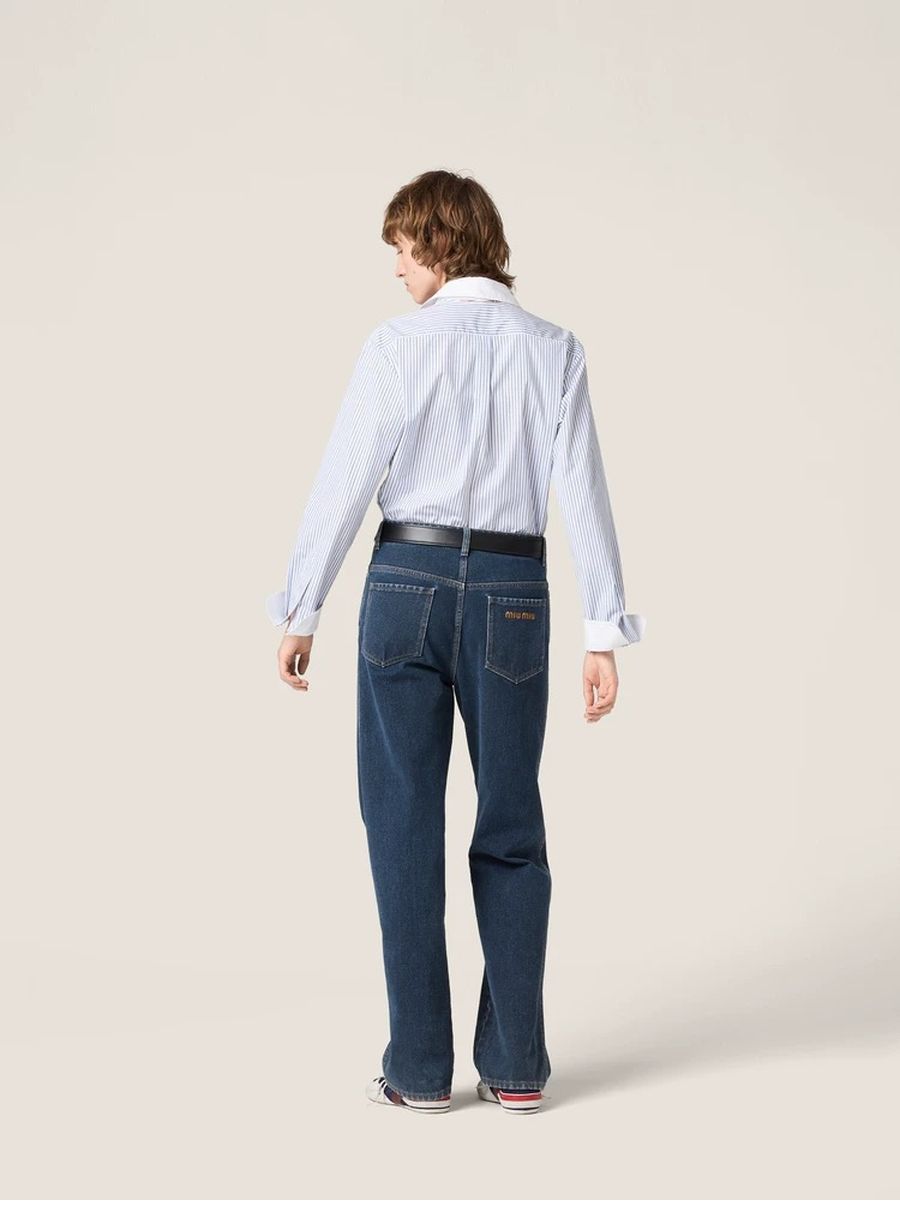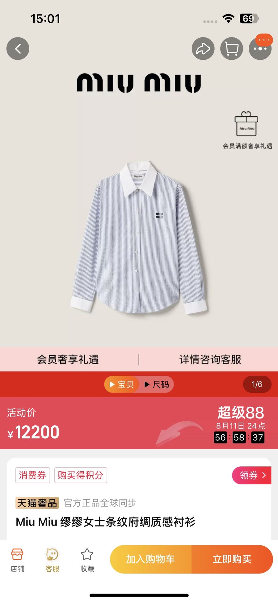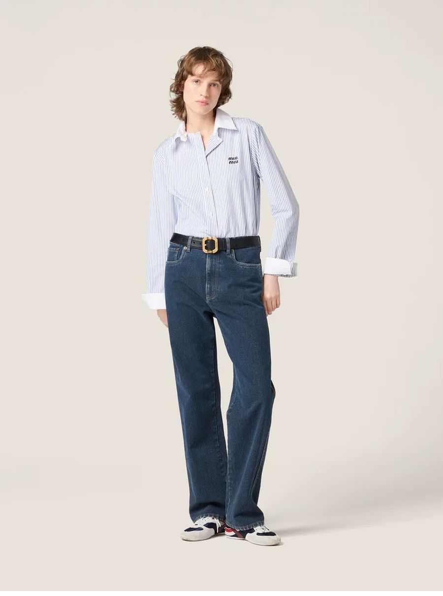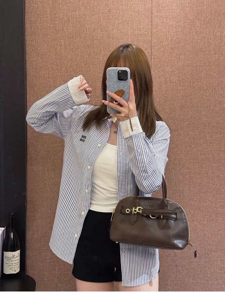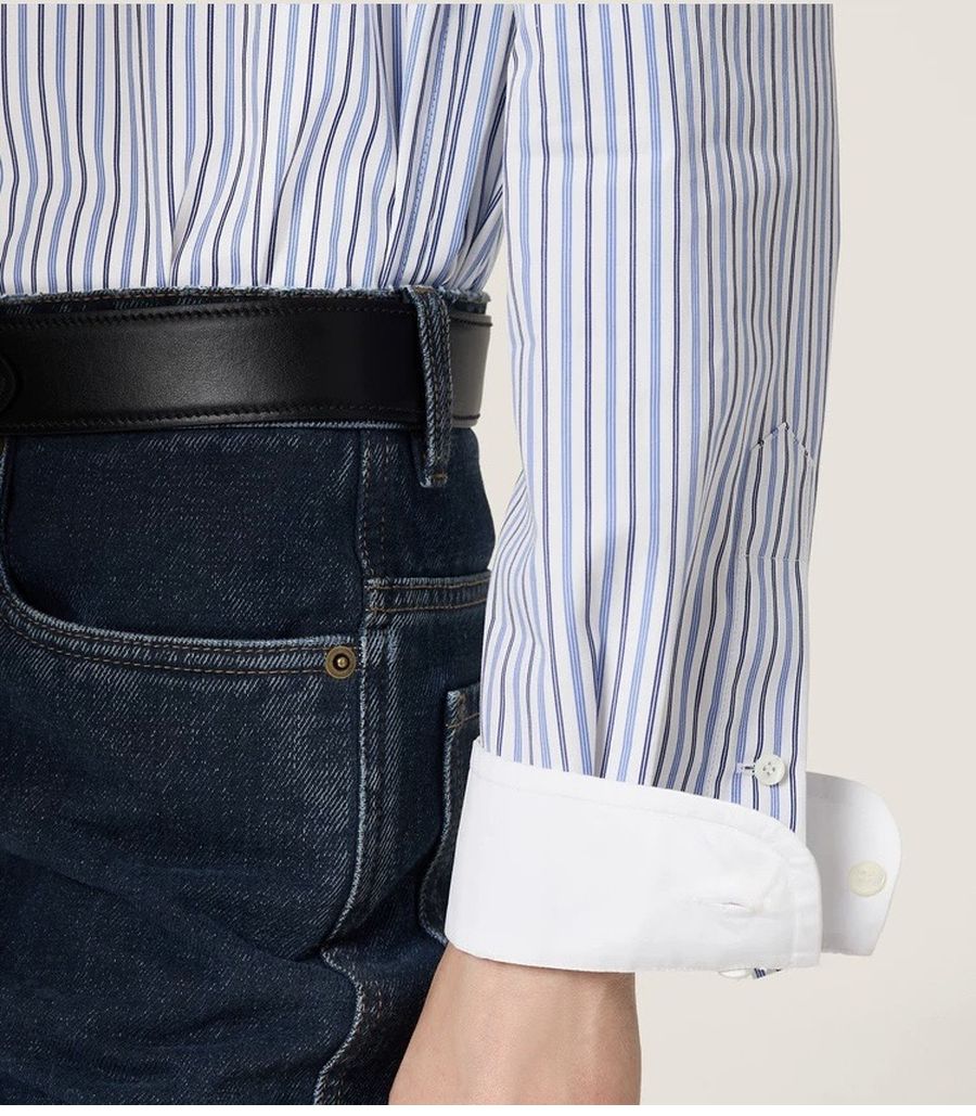 七夕限定首发新款!!采用法式衬衫灵魂的经典蓝白条,既有清新的学院风,又能穿出法式优雅感,这一刻miu的贵气感和活力少年感有了最完美的融合!