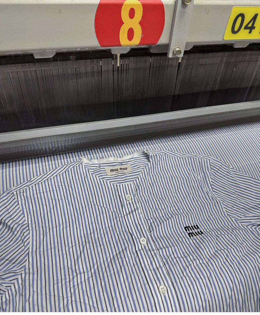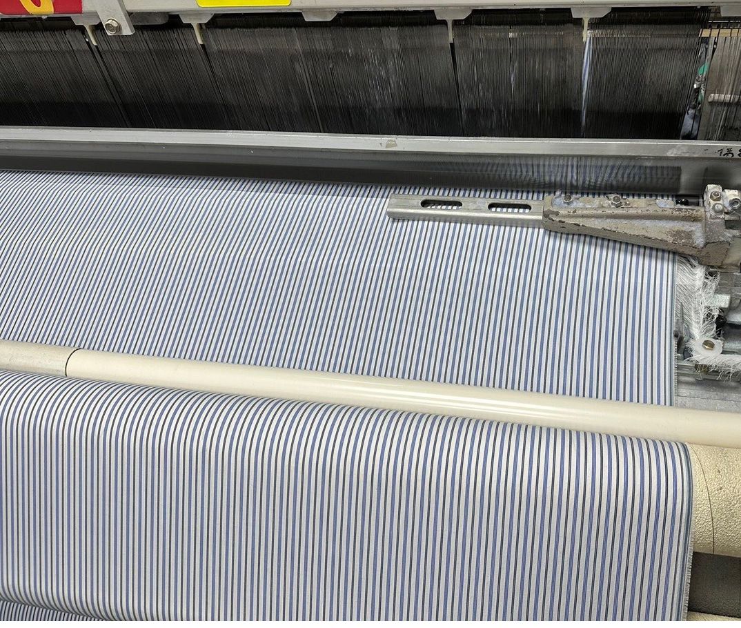 蓝白条可是比它家常规面料还要更加复杂 都是一点点织的 纱线经纬细度、染色、成布宽幅…每一项都是有严格要求的 超出你认知的珍贵!