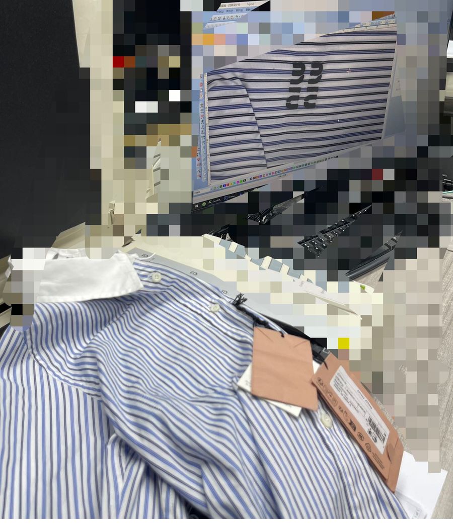 国际要求的固色标准,尤其是这种条纹混织的很容易串色染色,它需要按照原版颜色染好色之后调整条纹宽度经过水洗测试后才能生产布料的大货!而且棉府绸密度非常高,国内的纺织厂没几个能做