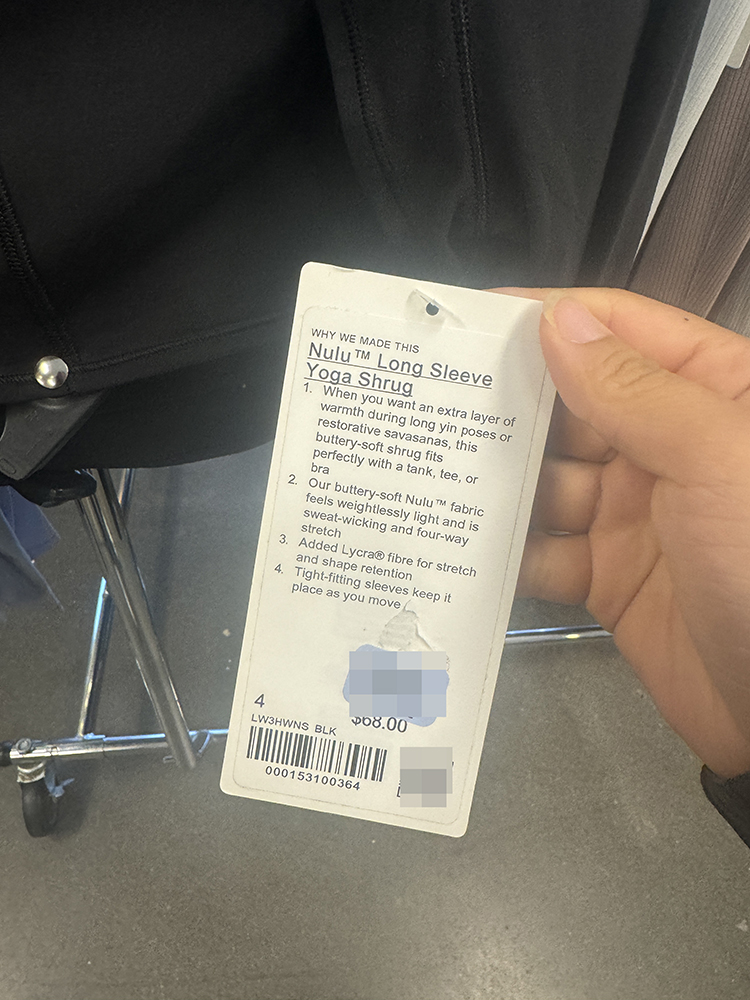 Lululemon/露露乐蒙 Nulu 女士紧身轻盈弹力瑜伽运动长袖短披肩