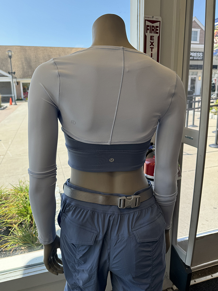 Nulu™面料轻盈柔滑,带有四面弹力 添加Lycra®氨纶,舒适伸展 衣袖采用紧身剪裁,习练时不易移位,