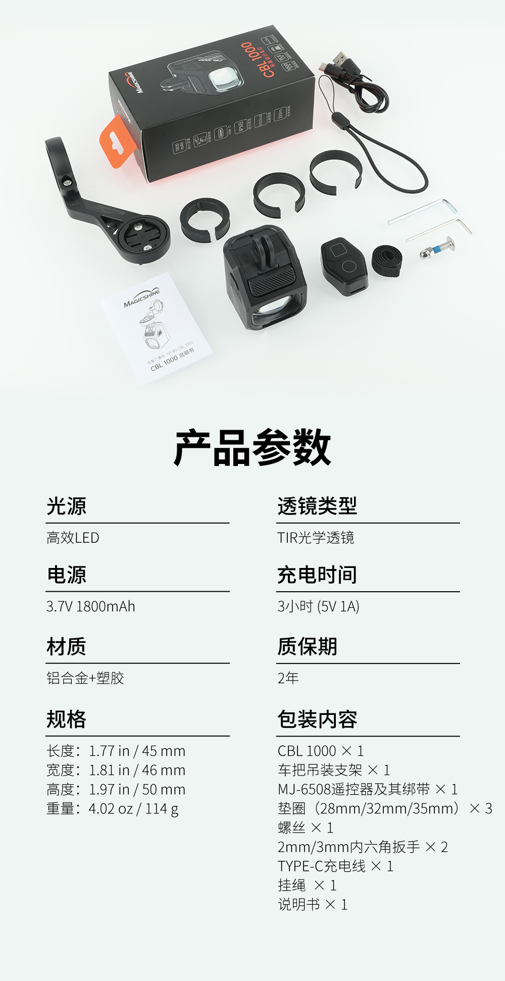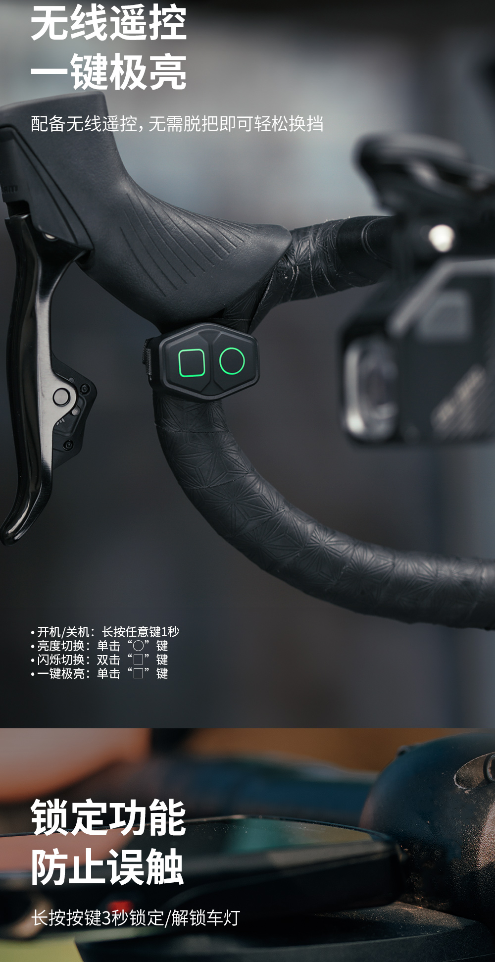 迈极炫自行车前灯吊装截止线夜骑灯智能无线遥控公路车灯CBL1000