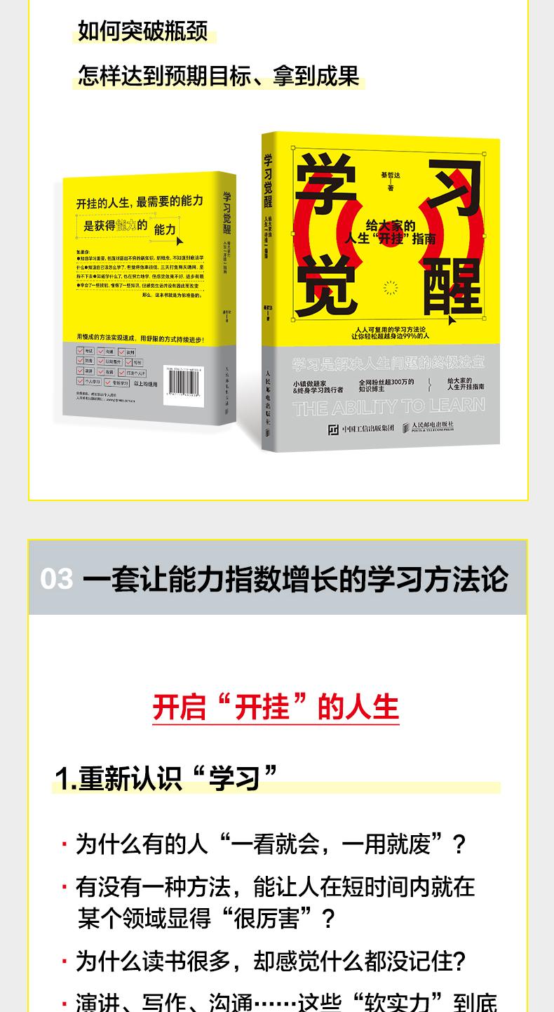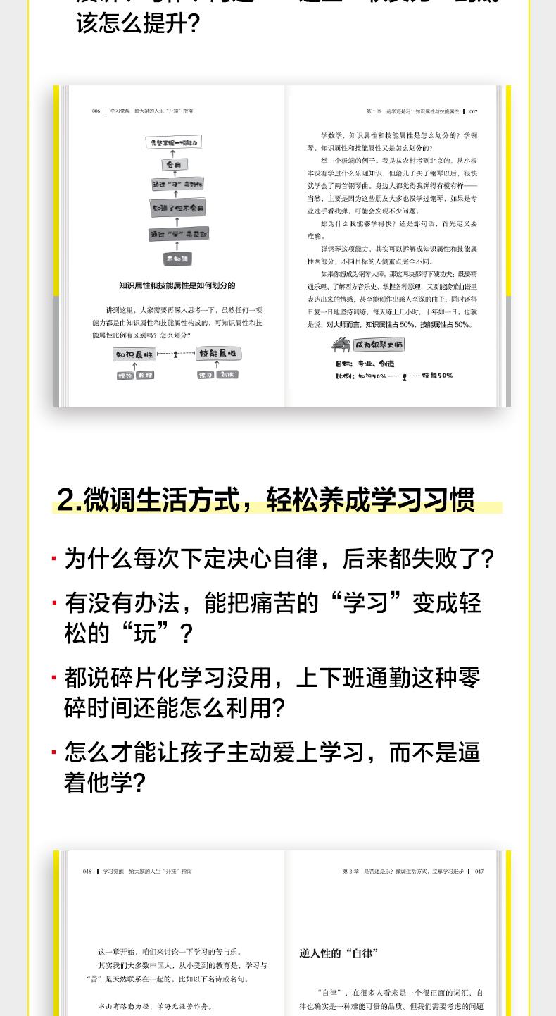 法,帮助读者轻松应对考试、兴趣、职场等多场景学习。书中倡导“微调生活方式”取代强迫自律,通过正反馈与兴趣*,让学习自然融入生活,成为