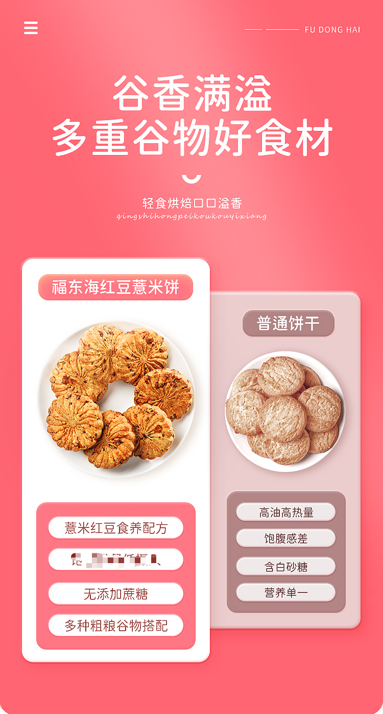 福东海红豆薏米饼干零食红豆饼薏米粉薏苡仁饼红豆薏仁饼干480克袋装