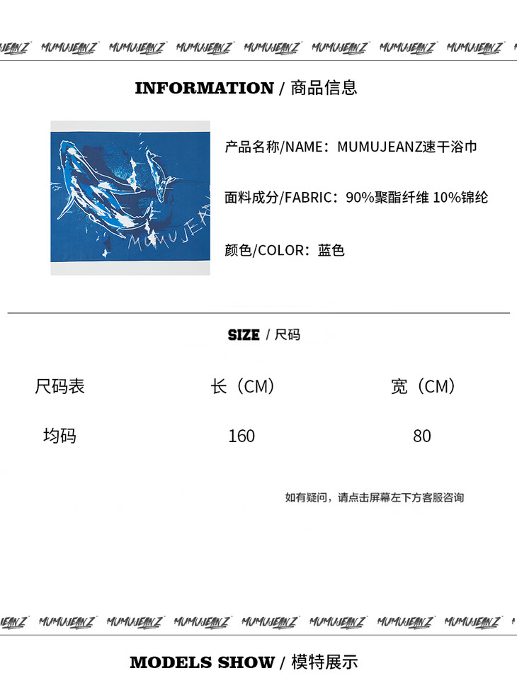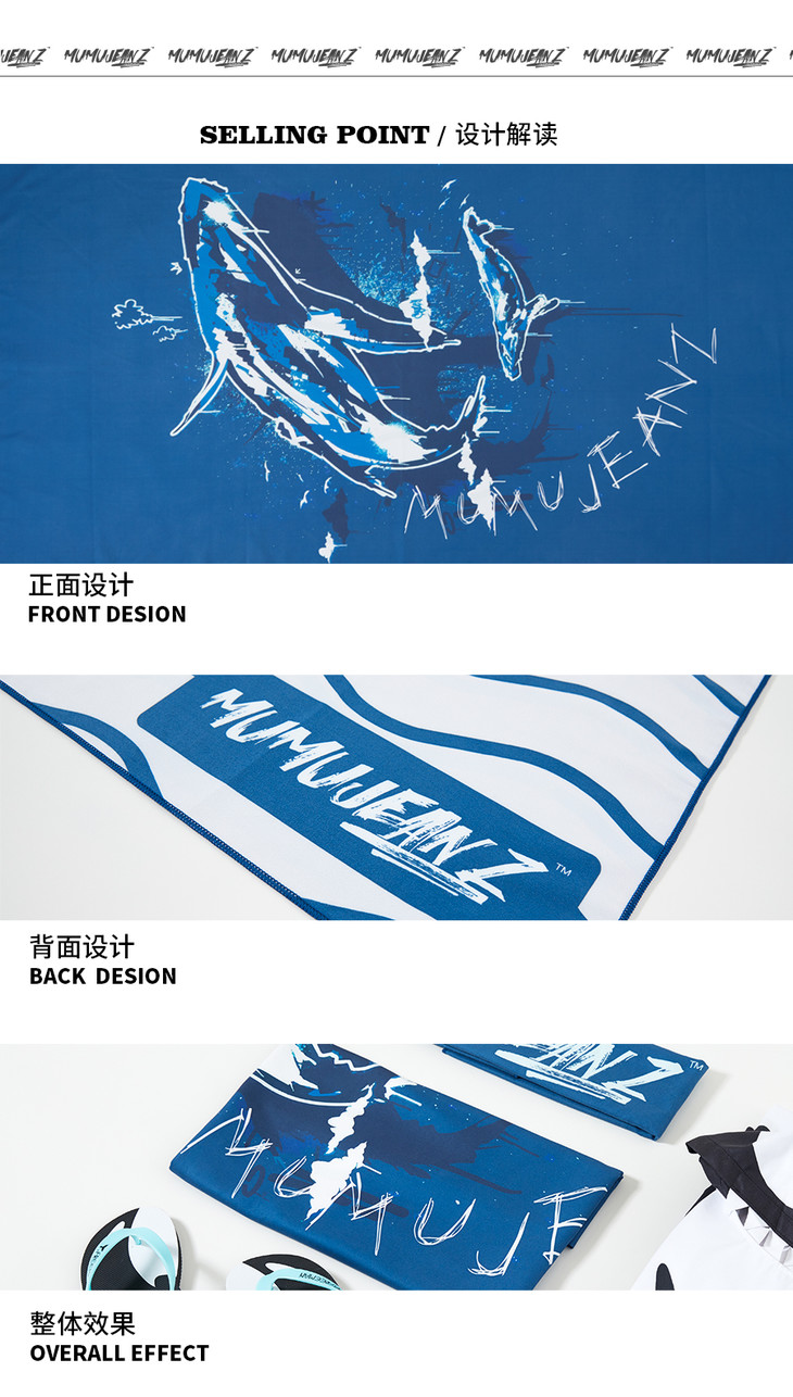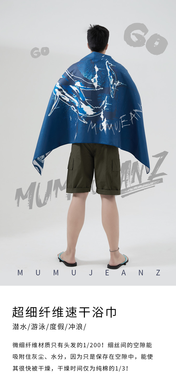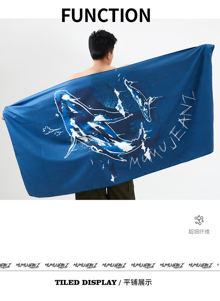 【装备】MUMUJEANZ原创大翅鲸速干吸水浴巾游泳运动快干便携旅行沙滩巾