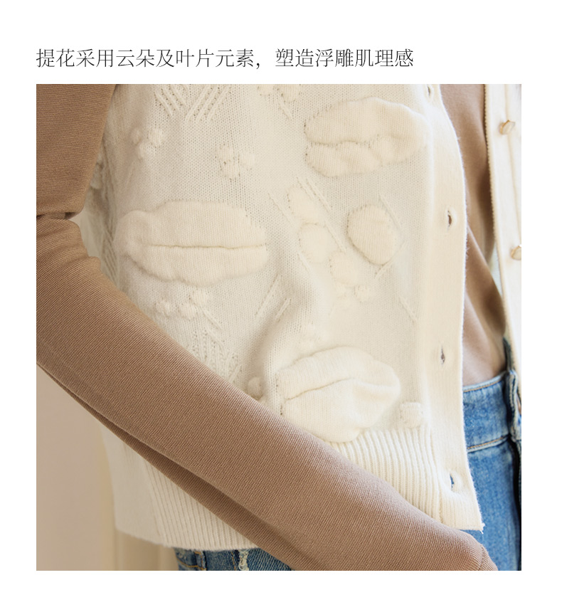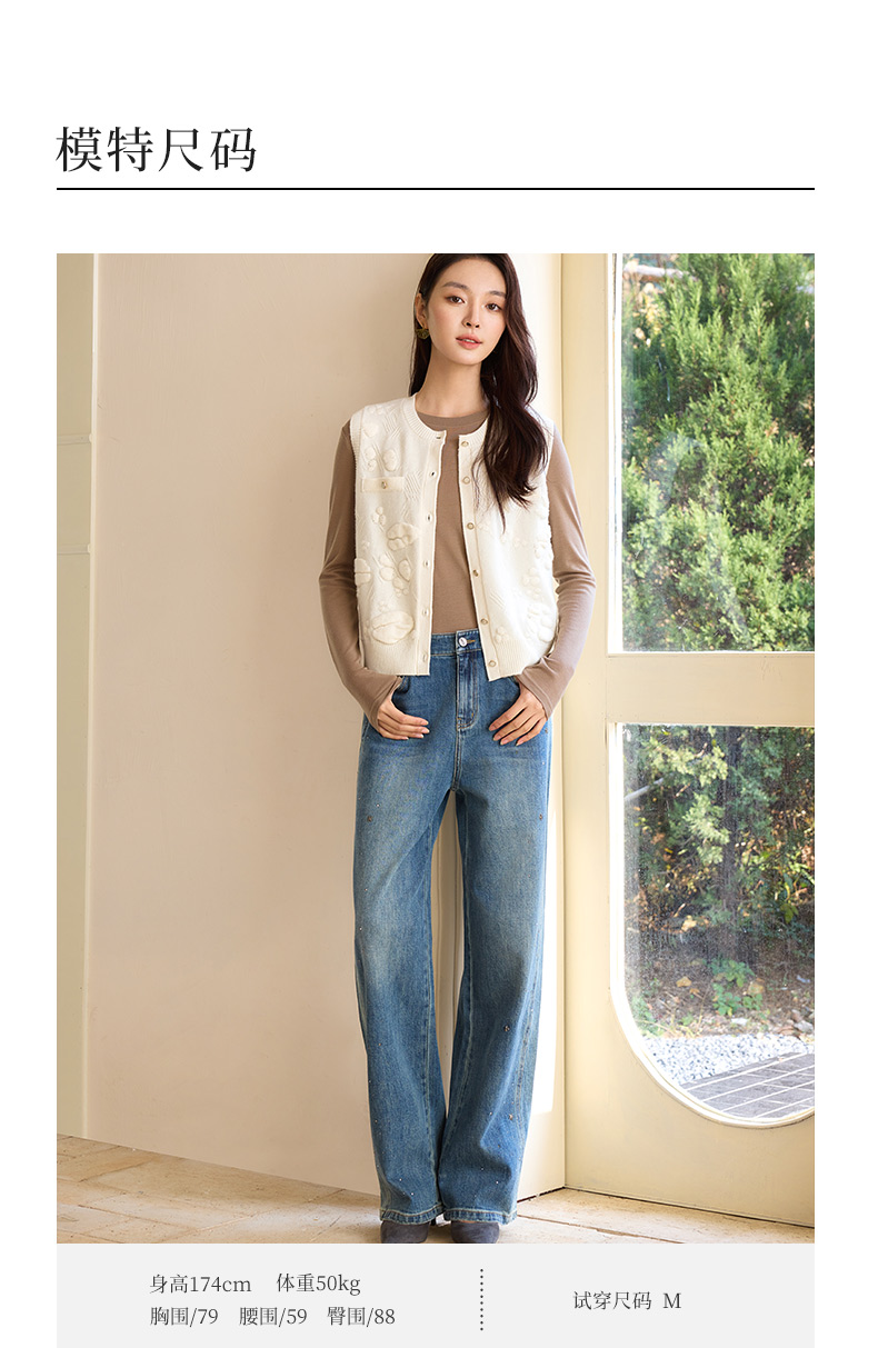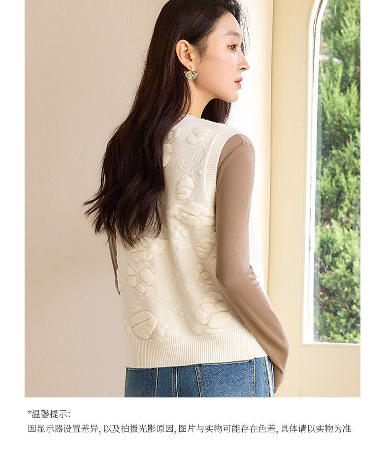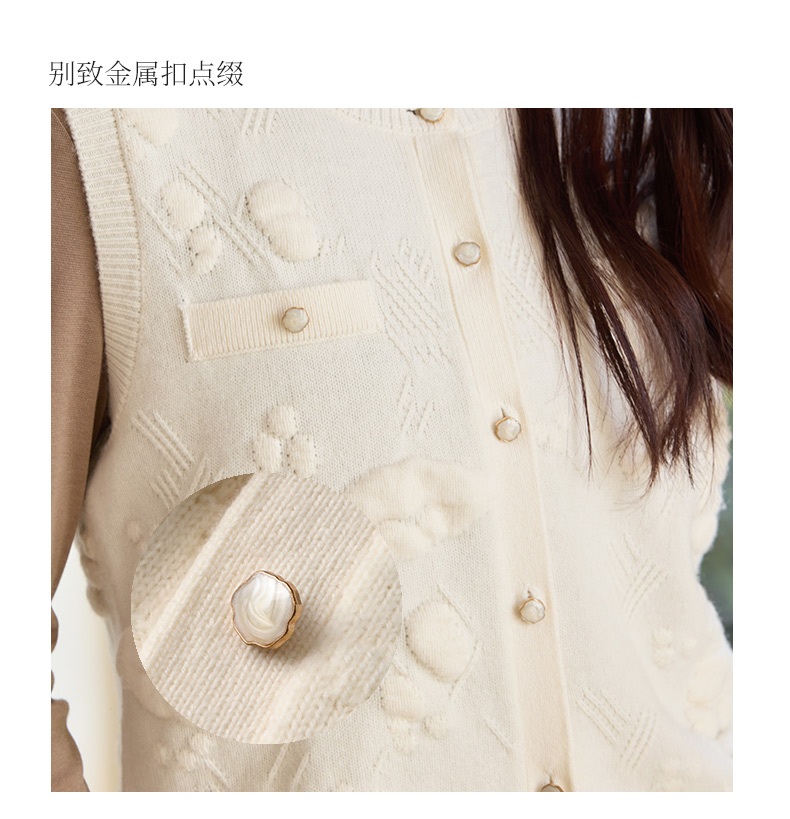 玳莎提花圆领针织马甲女2025年早春新款100%羊毛圆领马夹内搭上衣 FA33001