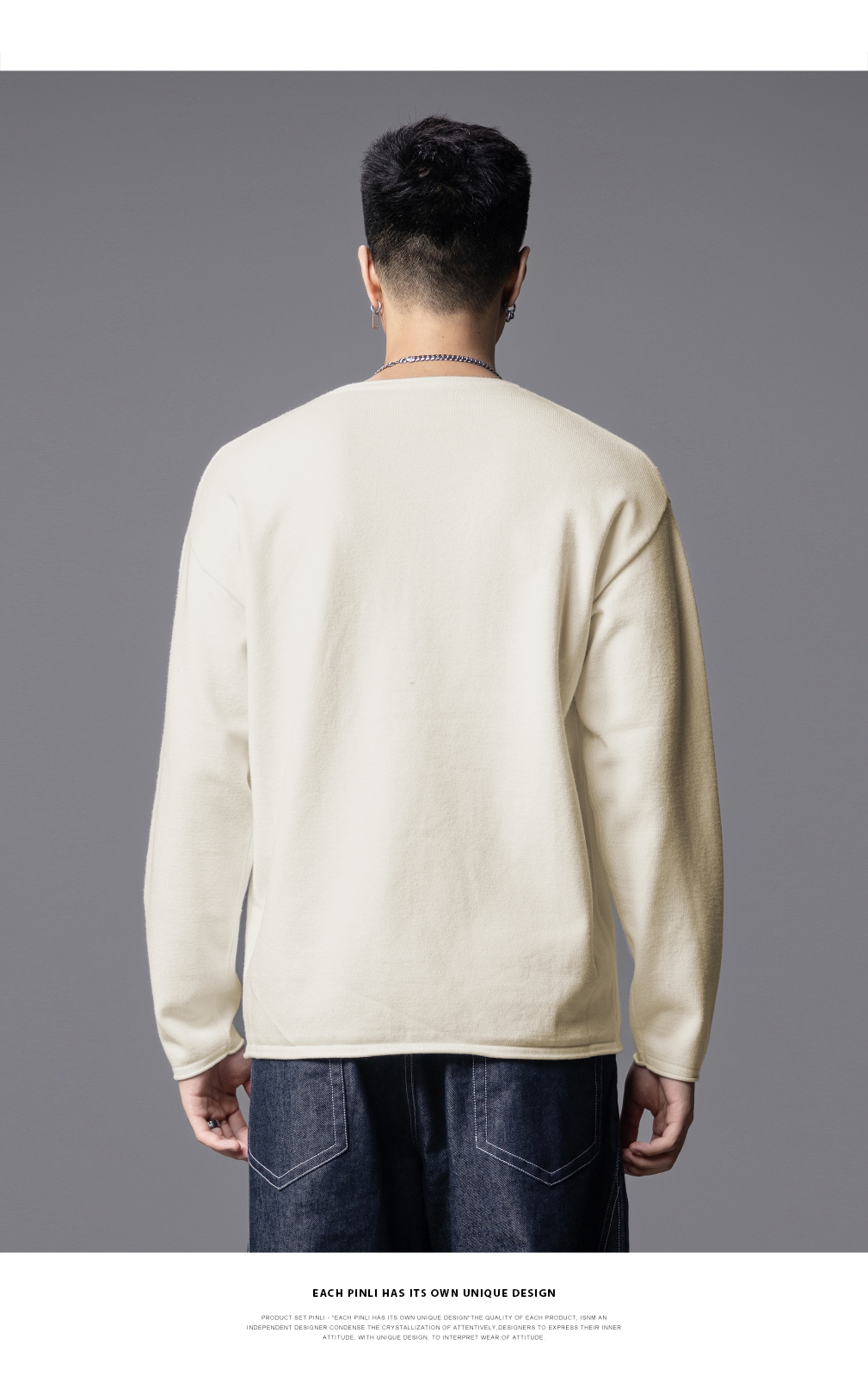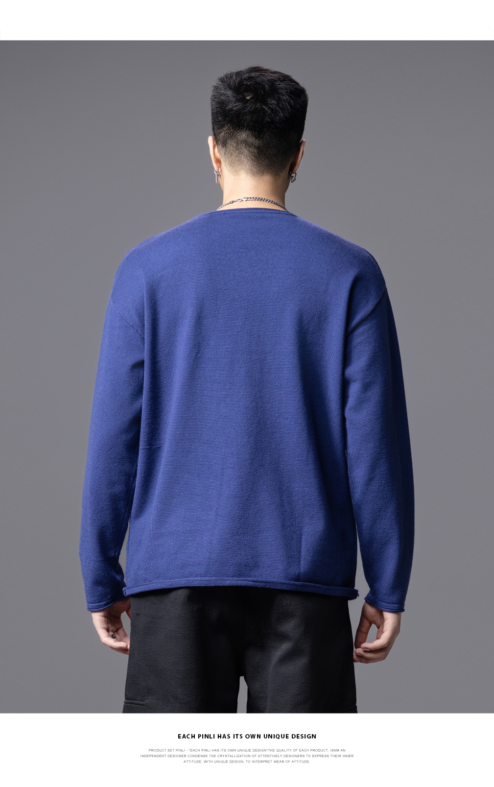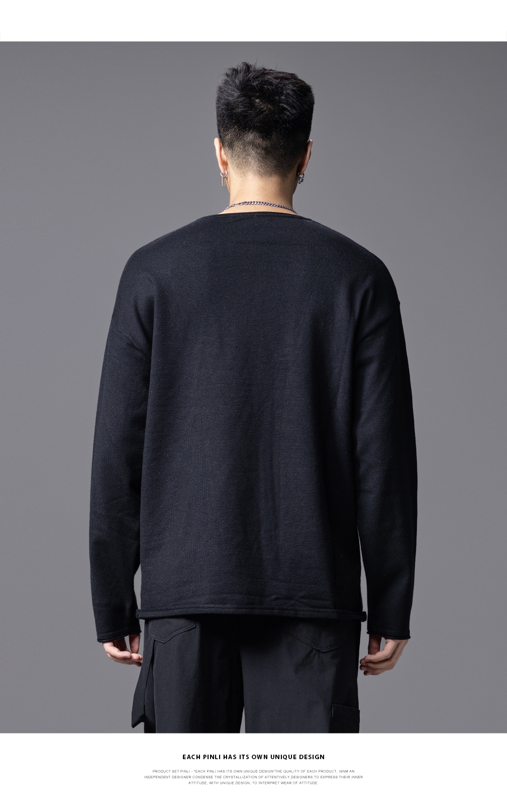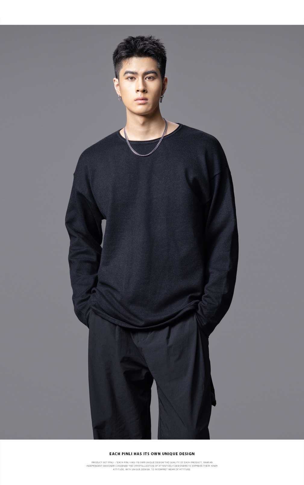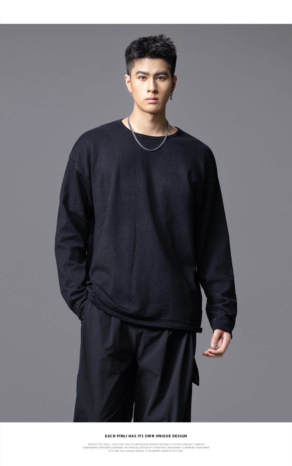 PINLI品立2025秋季新款简约休闲长袖针织衫男士纯色宽松打底毛衣GD253110135