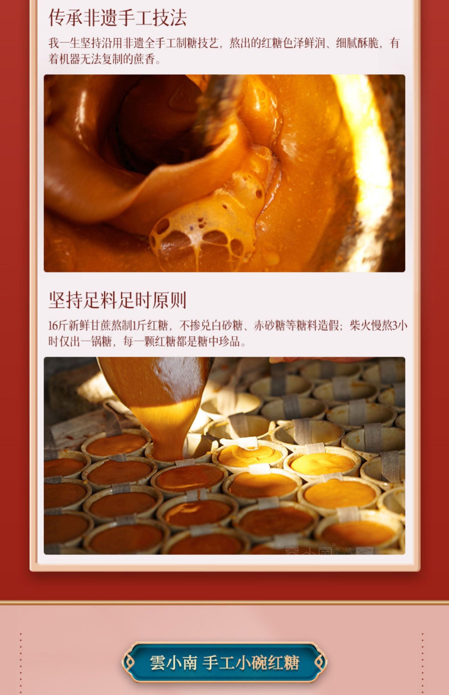 【云南 • 巧家小碗红糖】纯红糖制作 甘蔗清香 沙甜稠密 16斤鲜蔗糖=1斤纯红糖 新糖试吃装 现熬现发