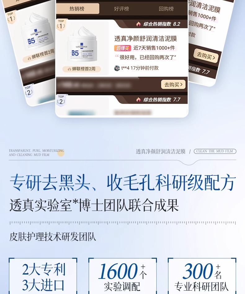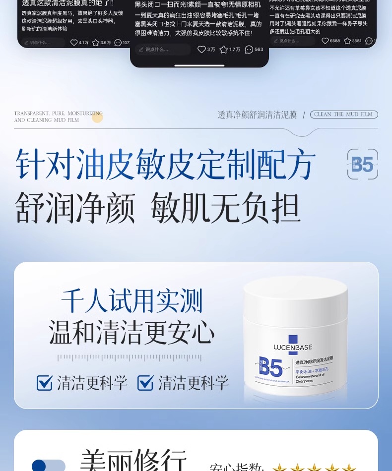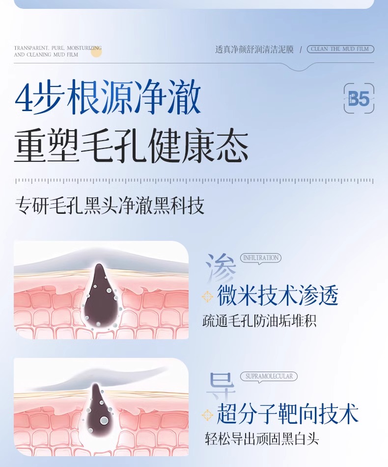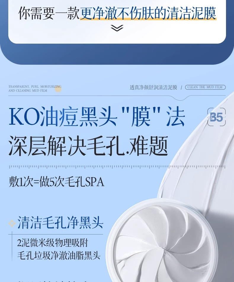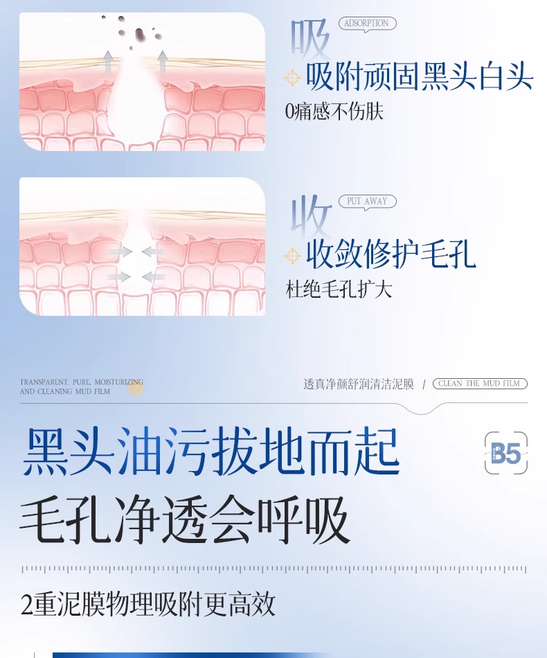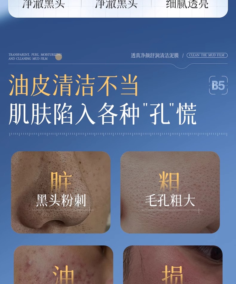 【去黑头收缩毛孔粉刺 深层清洁】#B5清洁泥膜去黑头收缩毛孔粉刺深层清洁面部脏东西美白涂抹式面膜
