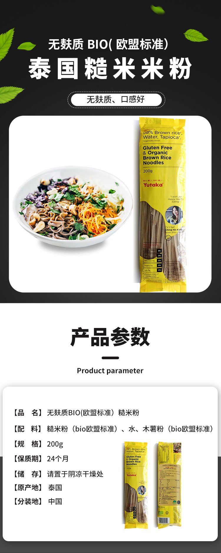 泰国糙米米粉米线200g 欧盟认证 无添加 无盐 0脂肪 无麸质