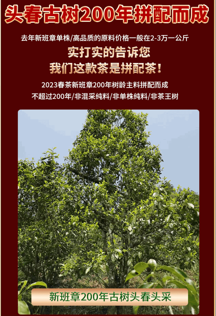 2023春茶 吉顺号古200新班章普洱茶生茶饼古树生普茶叶357克/饼