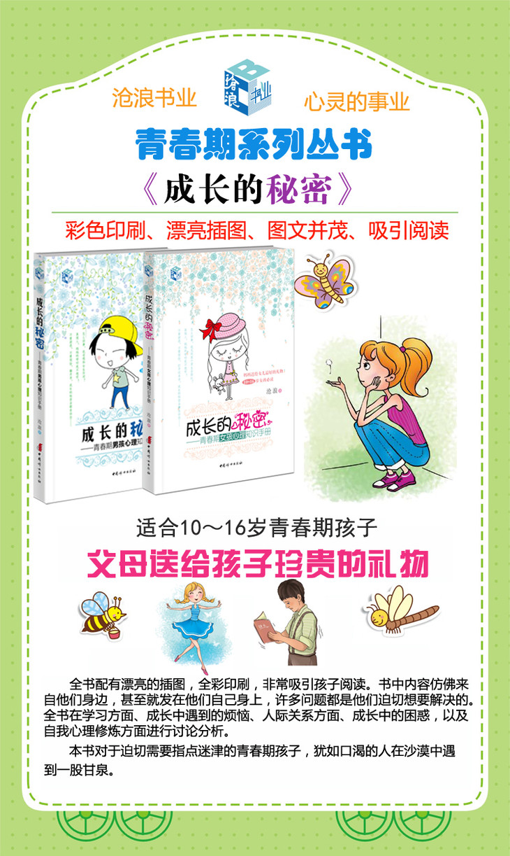 这便是青春期的心理问题。和生理问题一样,每个处在青春期的孩子和家长都感到很棘手。家长迫切地想帮助孩子,却往往不知从何处入手,甚至有时帮了倒忙;而身处其中的孩子往往茫然不知所措,无助,无奈。