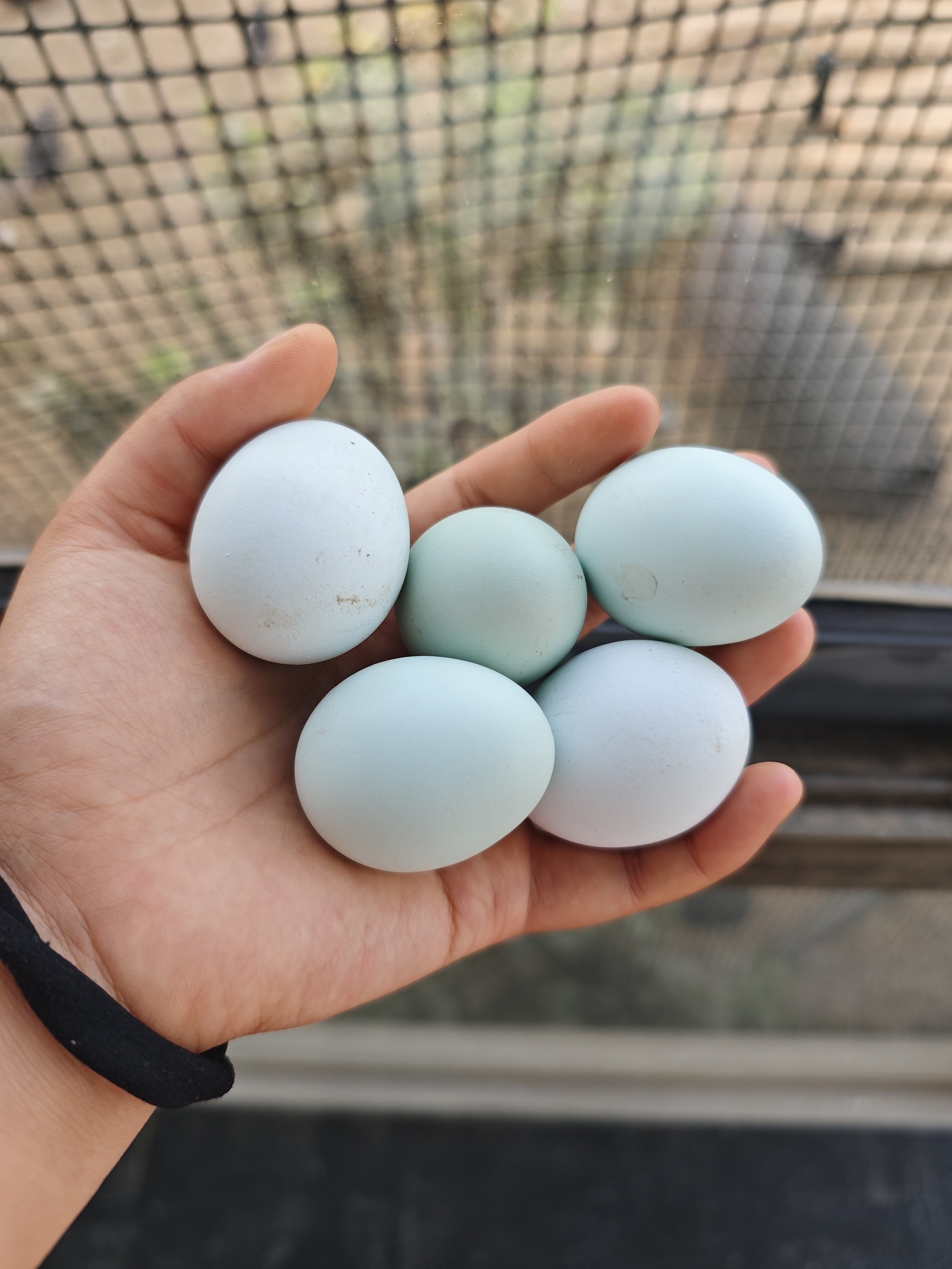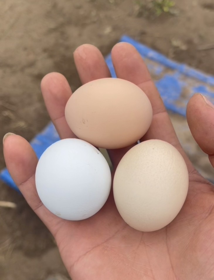 坤巧农场的芦花鸡蛋的蛋壳以绿壳为主,同时也有少量粉壳和白壳的,而且个头大小不一,不是市售的一模一样无差别的笼养鸡蛋,且吃且珍惜