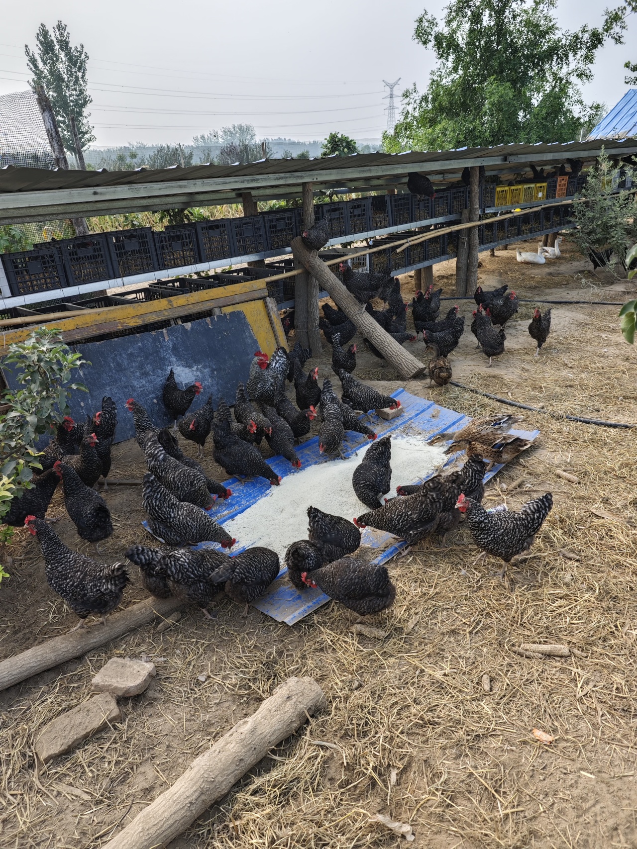 散养区:一半区域是果树林,早上小鸡都会飞到树上来回跳跃,中午也会在树下慵懒的乘凉。一半区域是空白地,也是喂养区域,平时会撒一些草种子和应急的粮食种子。