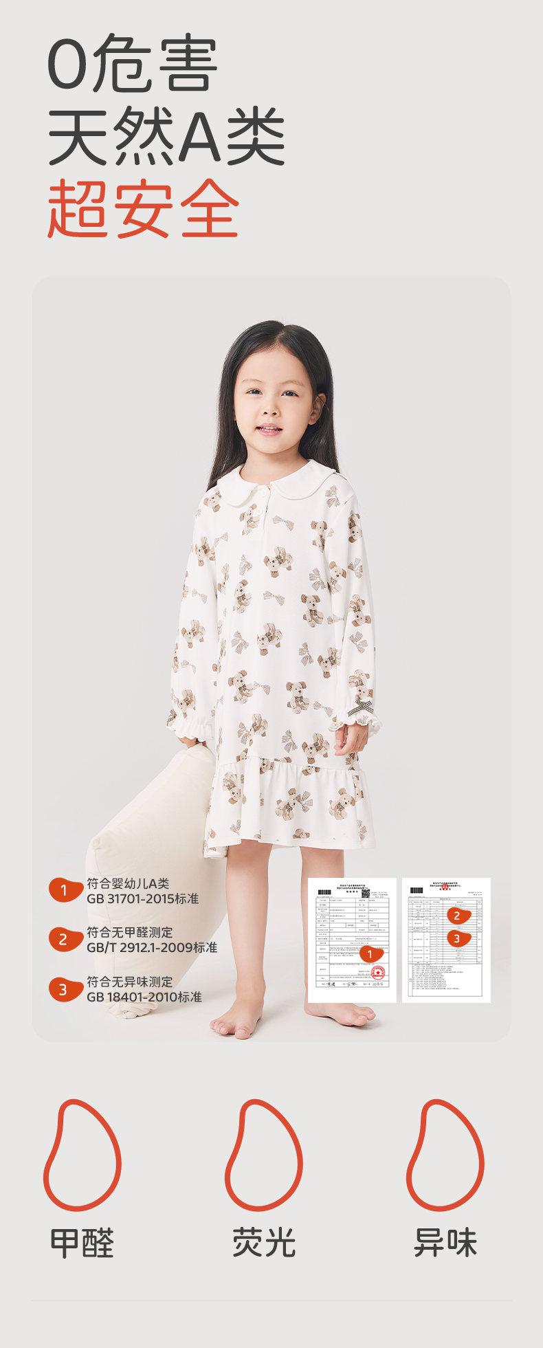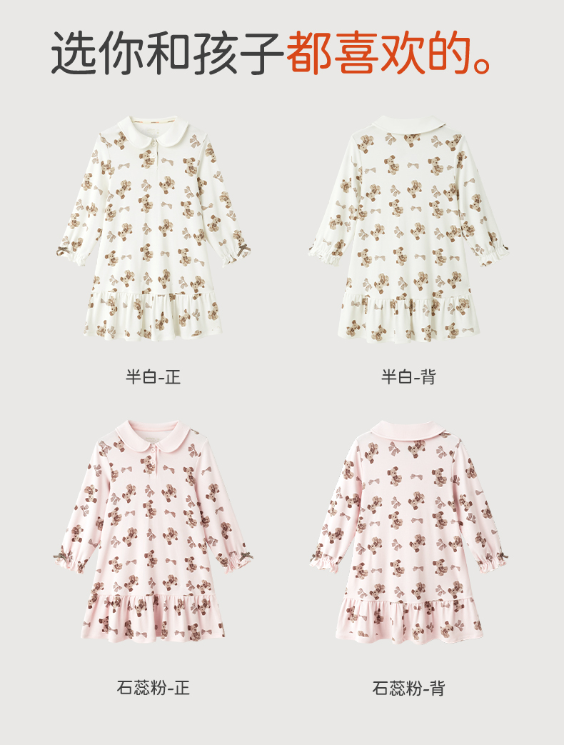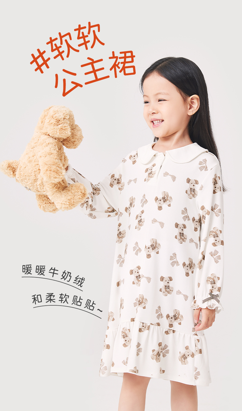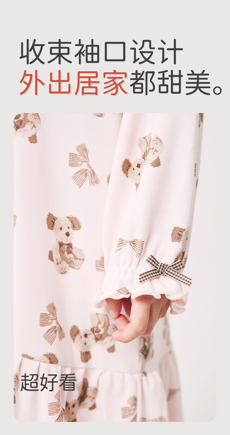 小番薯potatokids 秋冬女童舒适柔软牛奶绒翻脸长袖连衣裙居家睡裙PQ3629492