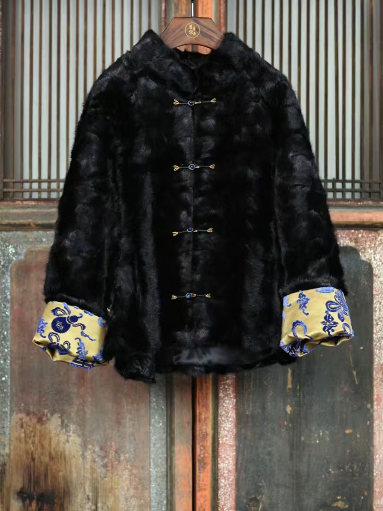 盛唐牡丹 | 水貂毛拼真丝漳缎袖外套
