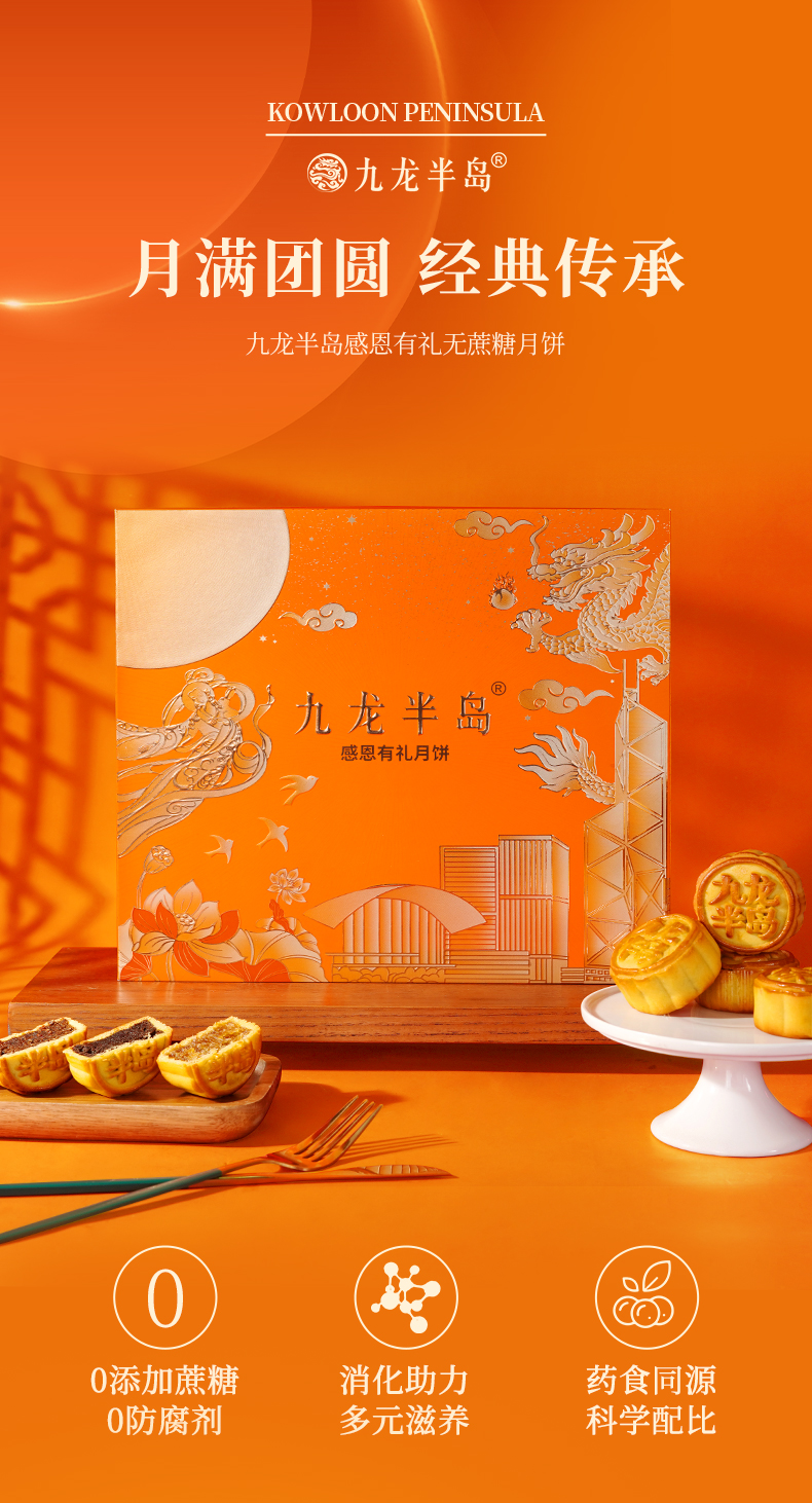 九龙半岛感恩有礼无蔗糖月饼400g/盒(爱马仕限量版)(精装礼盒/8个装)