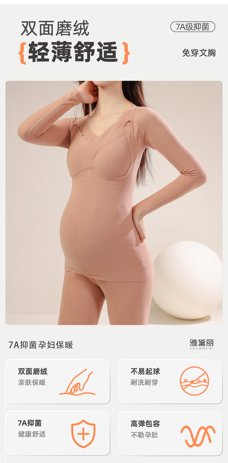 雅黛丽孕妇保暖内衣7A抑菌免穿文胸产后专用哺乳期秋衣秋裤套装女
