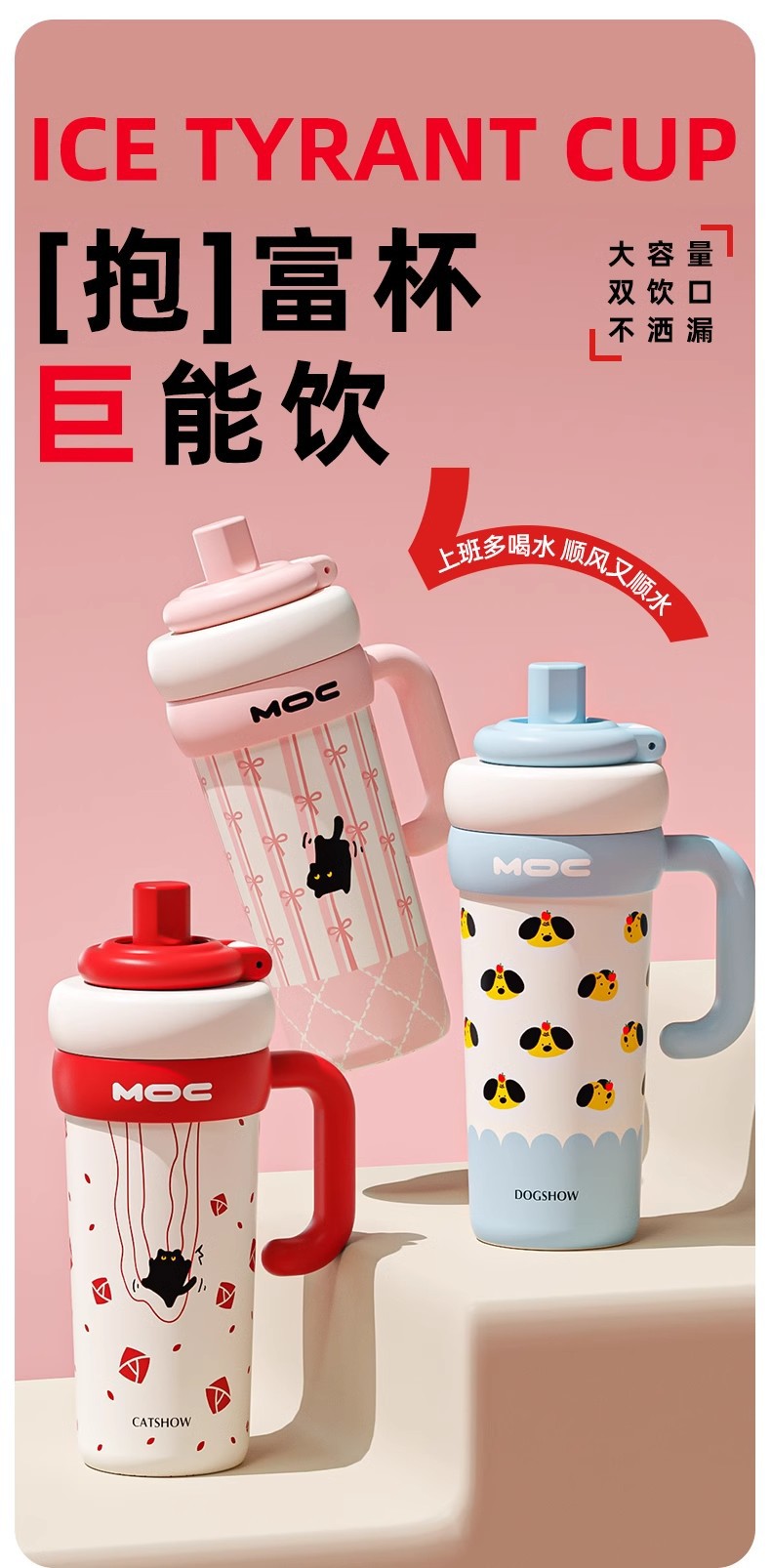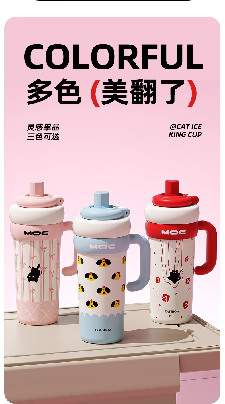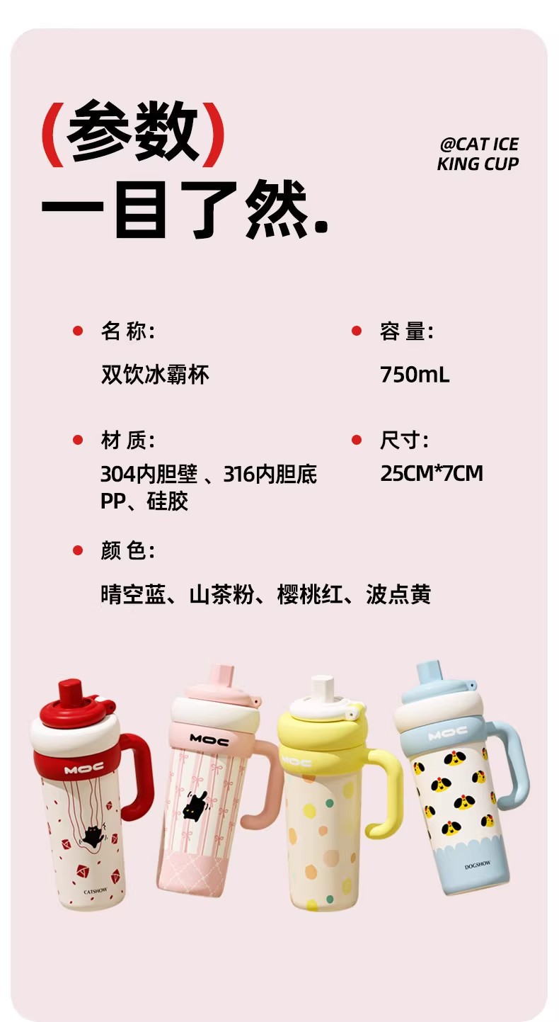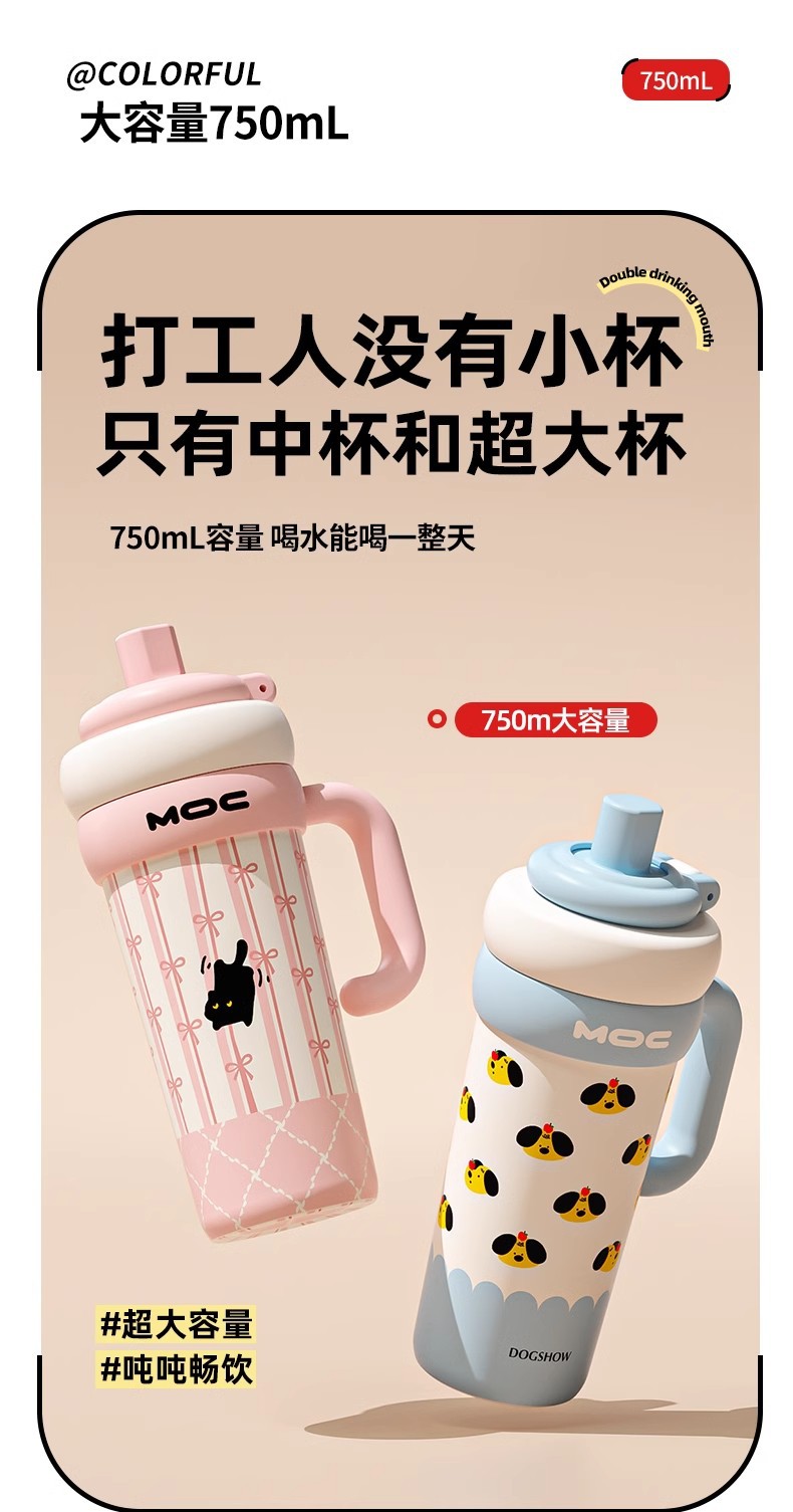【大容量750ML❗陶瓷内胆保温杯】上班多喝水「顺风又顺水」(吸&喝)双饮增加饮水趣味,2025新款冰霸杯大容量水杯,开学季巨无霸吨吨吸管杯L