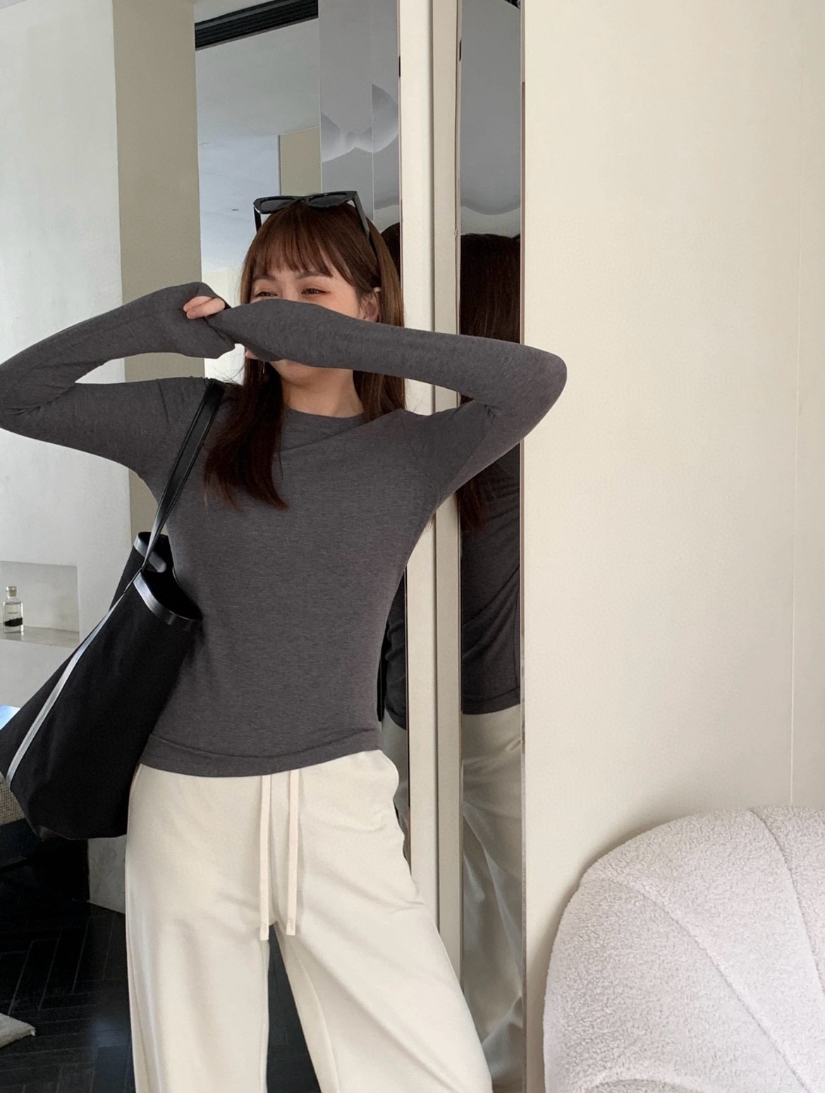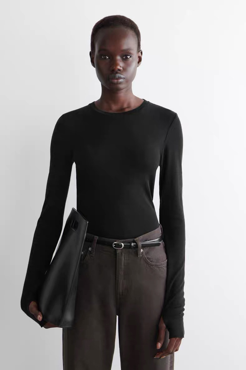 COS 极简风 修身版型 通勤指孔 磨绒 打底衫