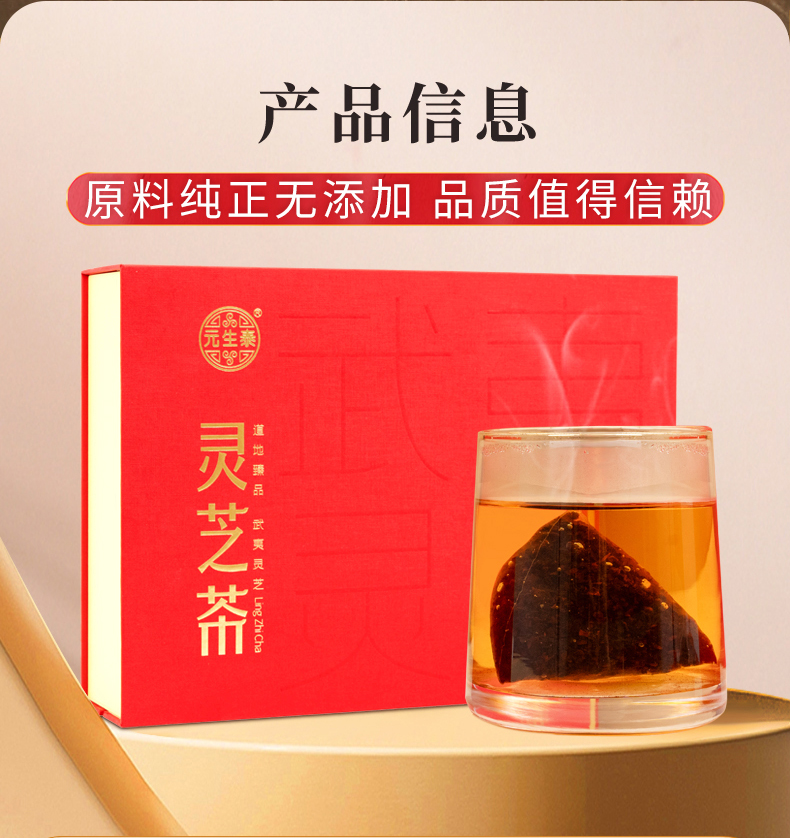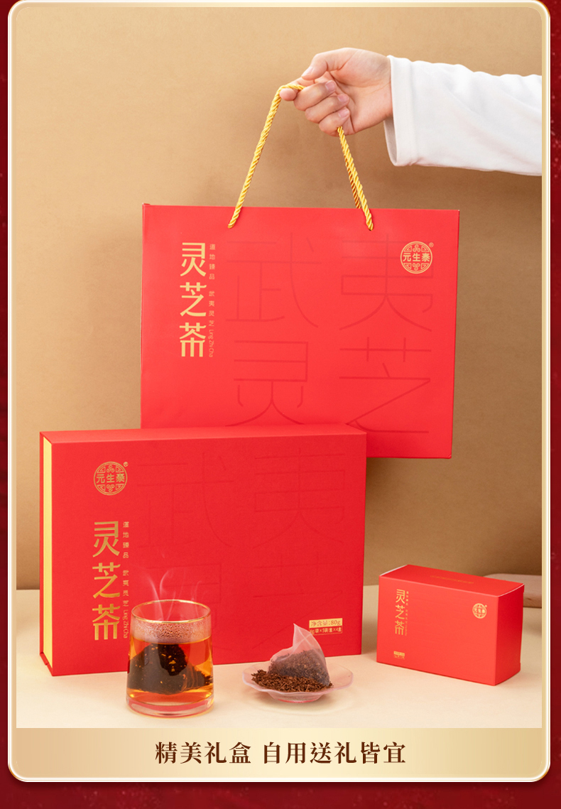 元生泰 紫灵芝茶 4g/袋*5袋/盒*4盒 紫灵芝 袋泡茶礼盒装 药食同源 泡茶煮茶养生茶