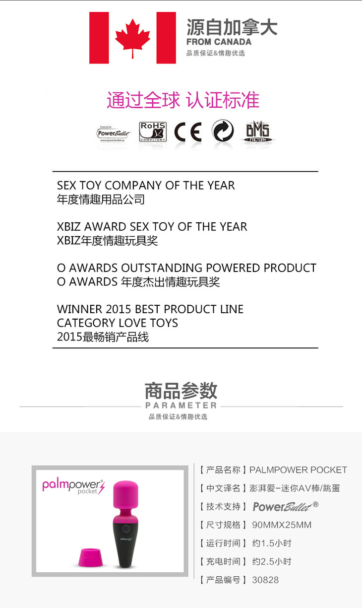 加拿大Palmpower AV按摩棒高点棒震动力度女用调情自慰按摩器