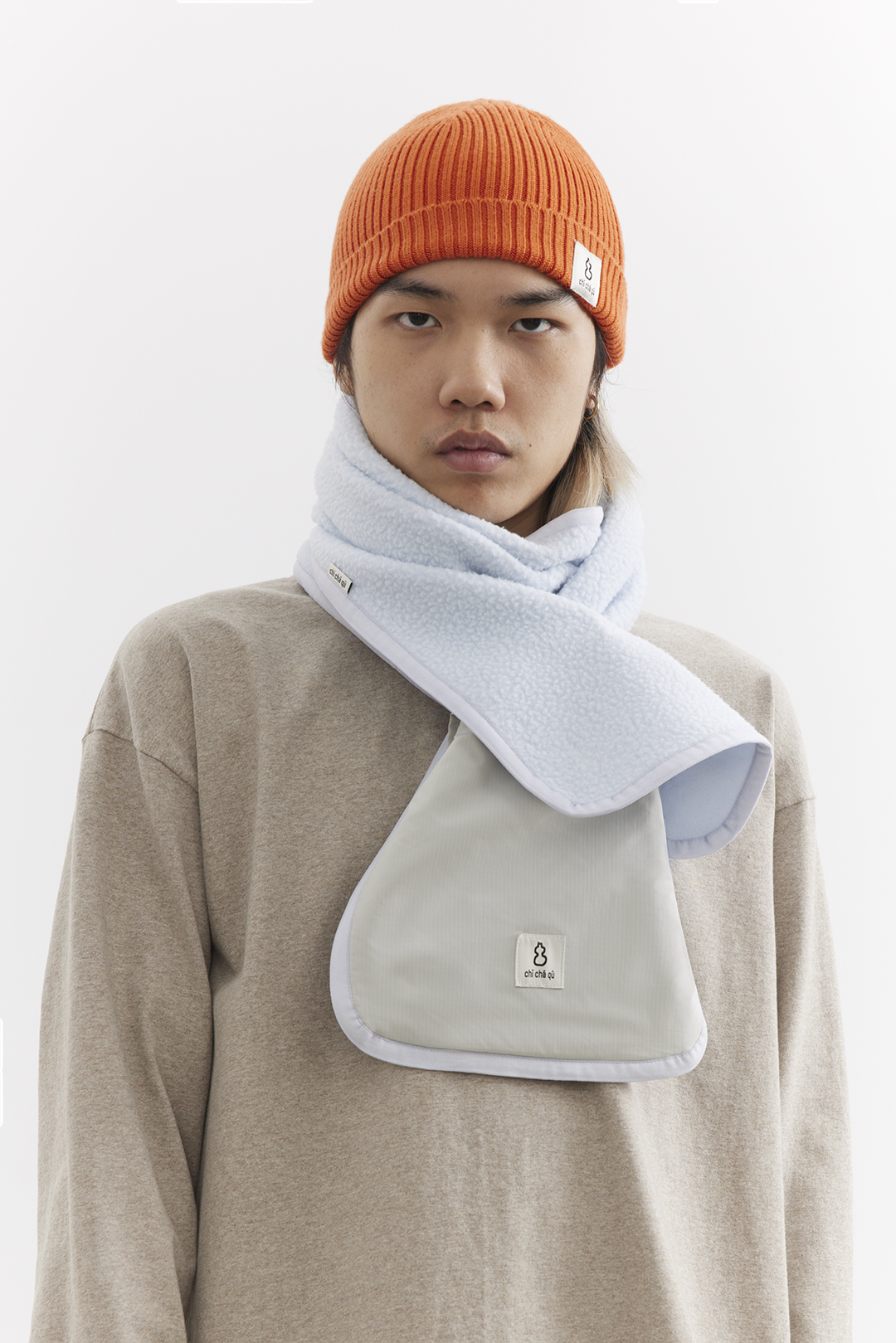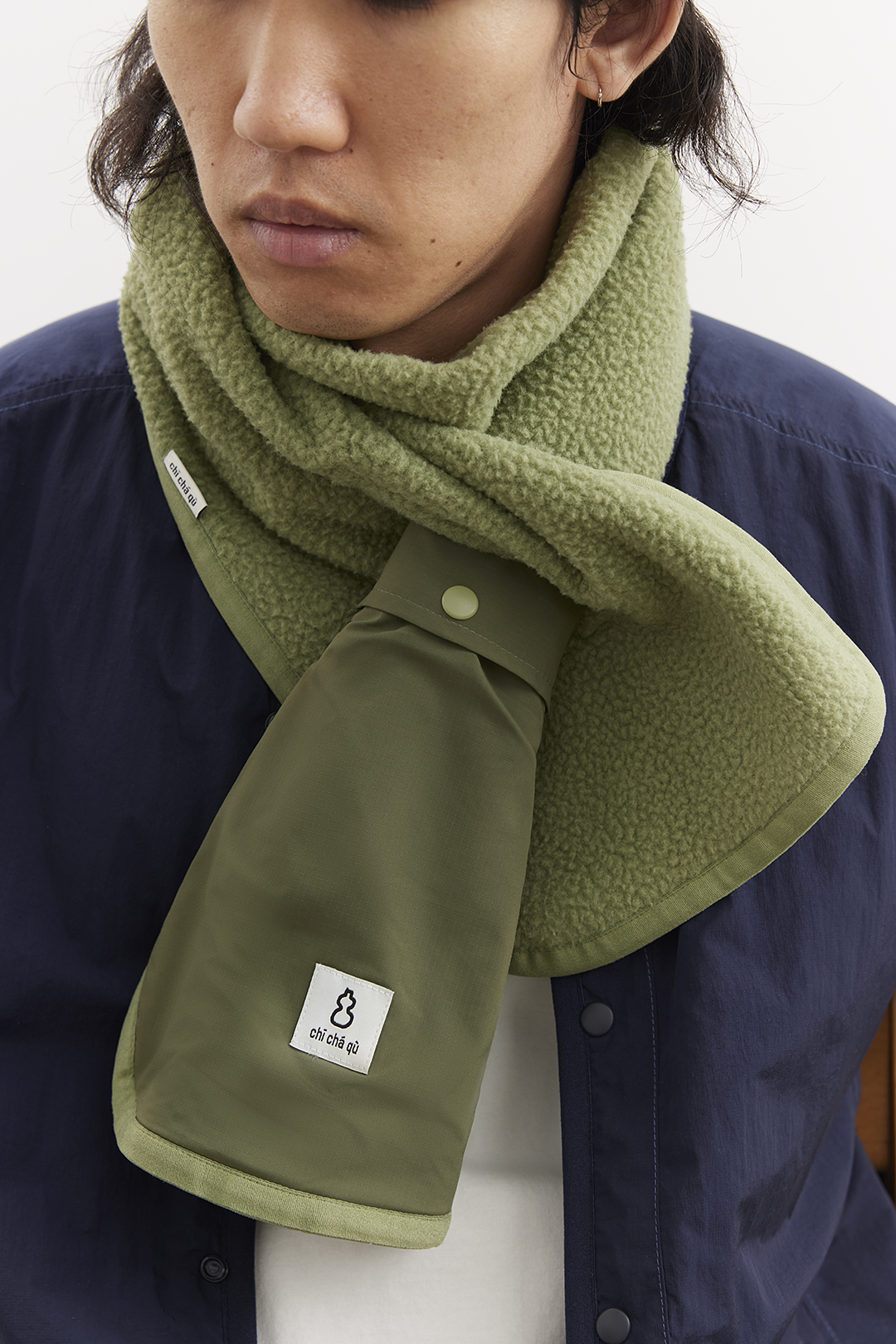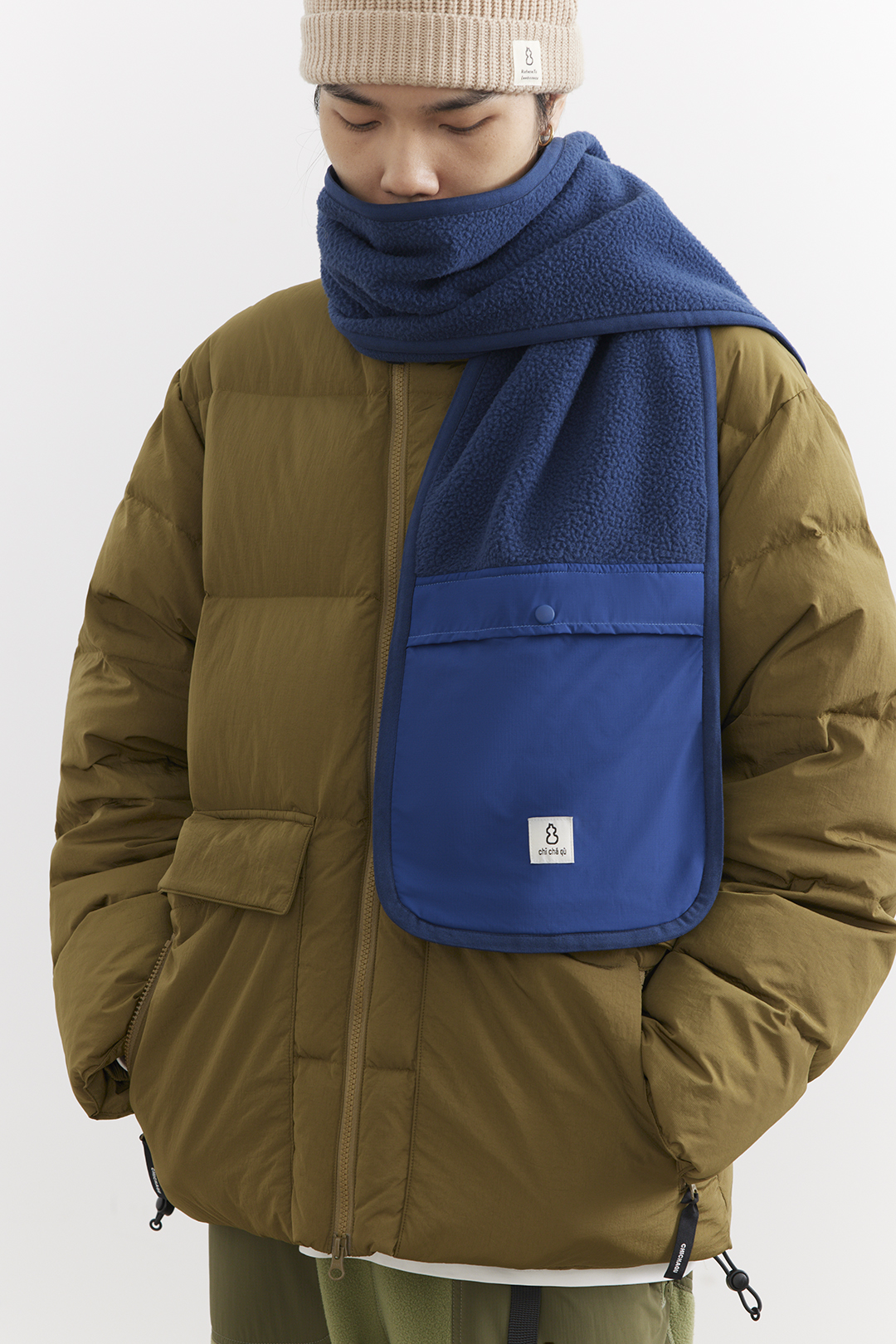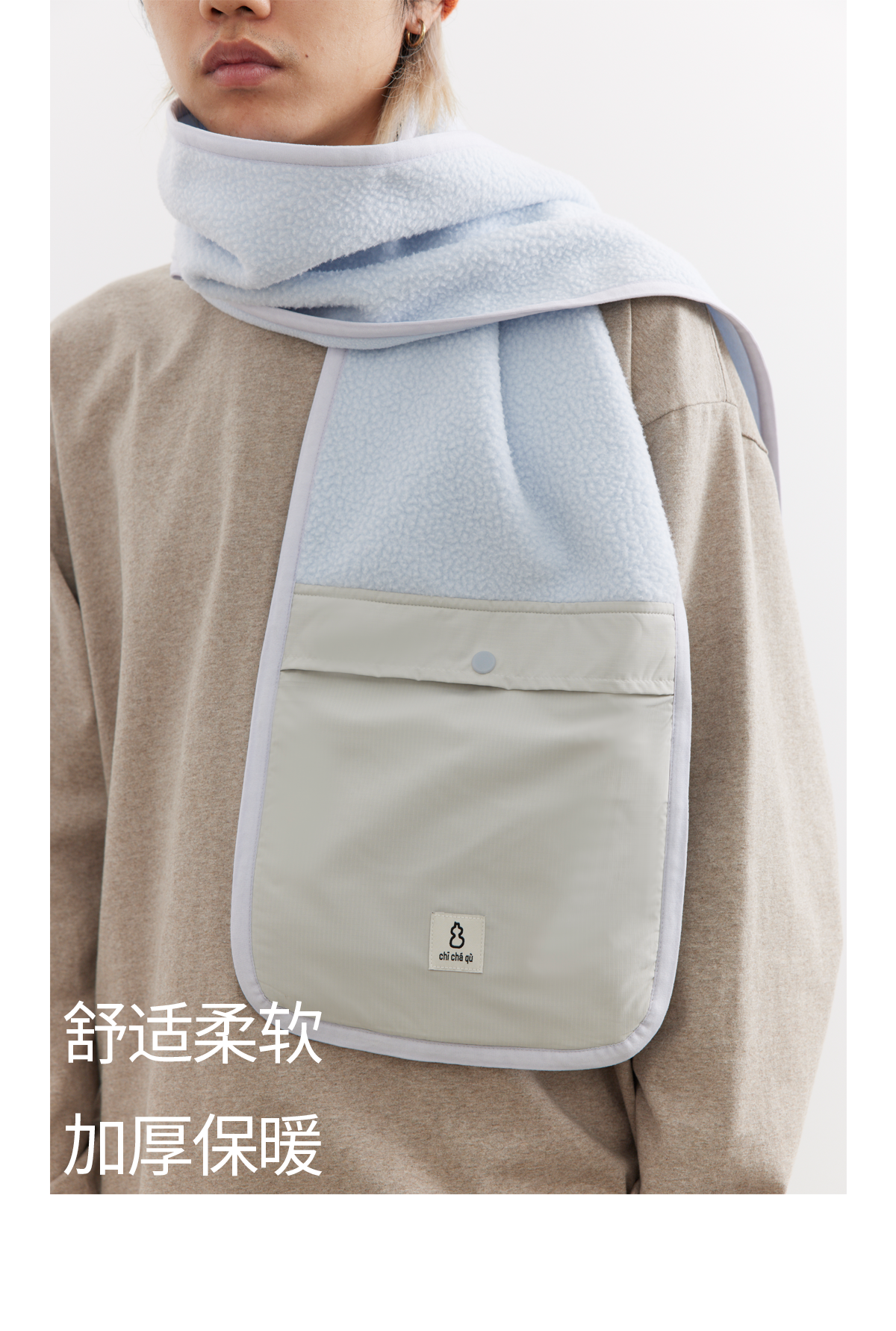 吃茶去chichaqu25秋冬户外抓绒摇粒绒围巾拼接口袋防寒防风保暖
