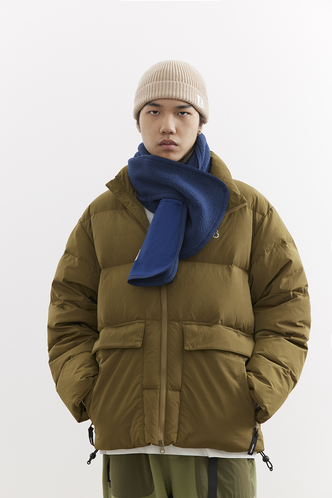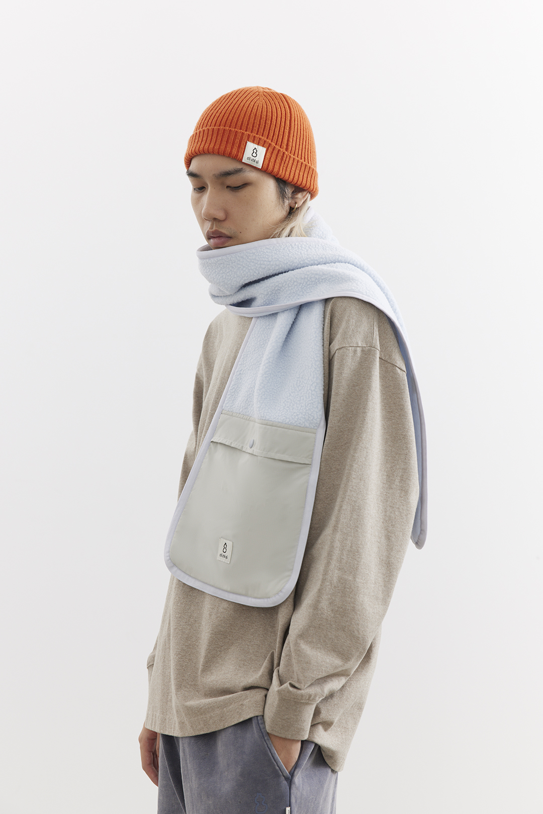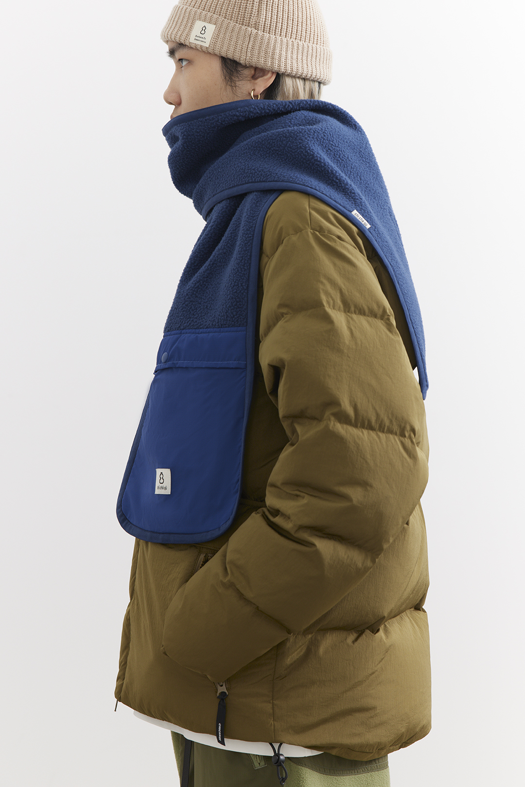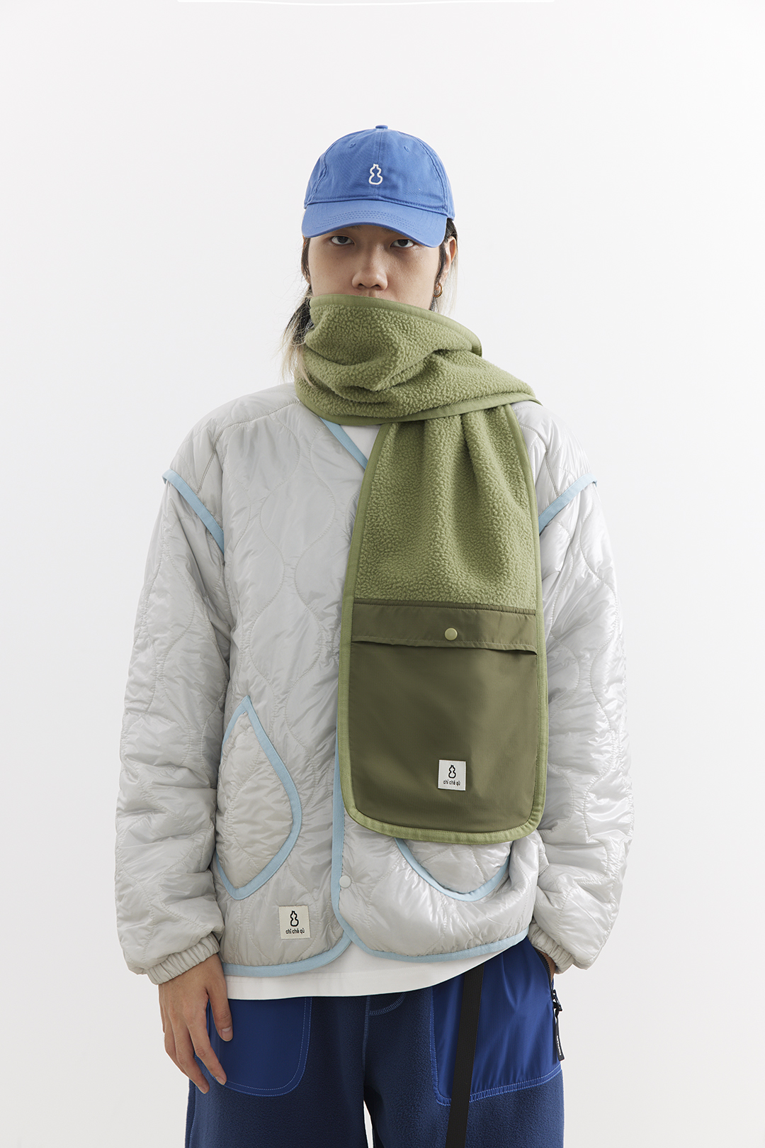 吃茶去chichaqu25秋冬户外抓绒摇粒绒围巾拼接口袋防寒防风保暖