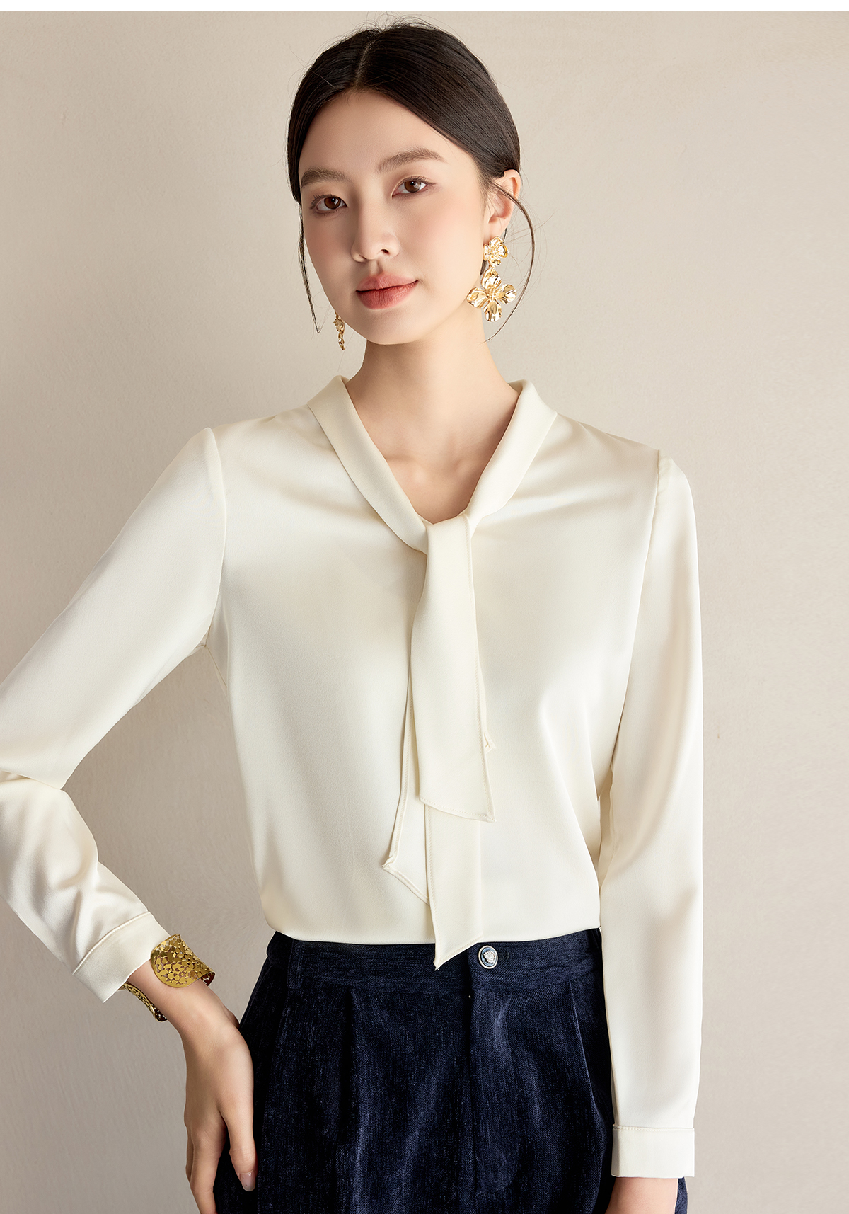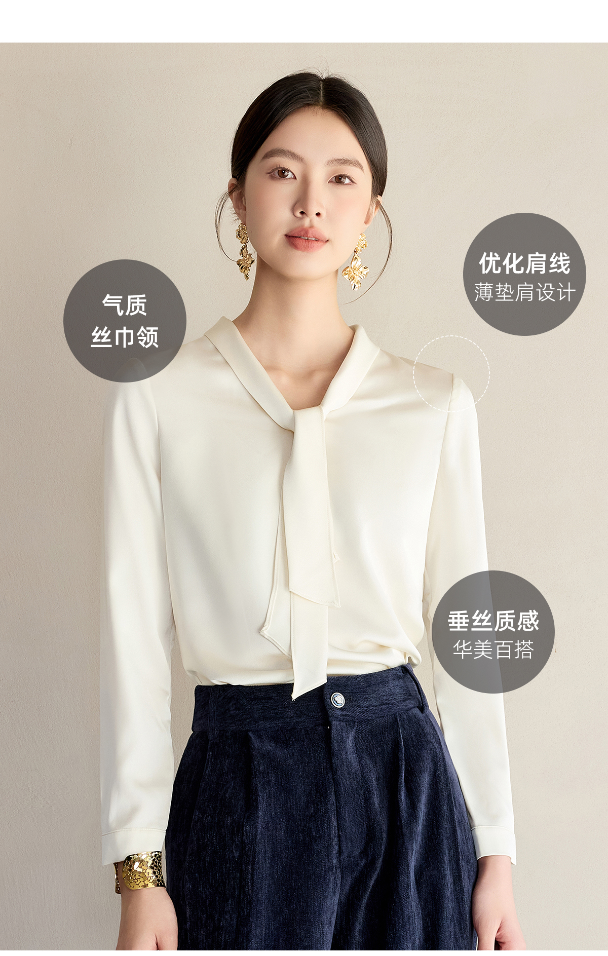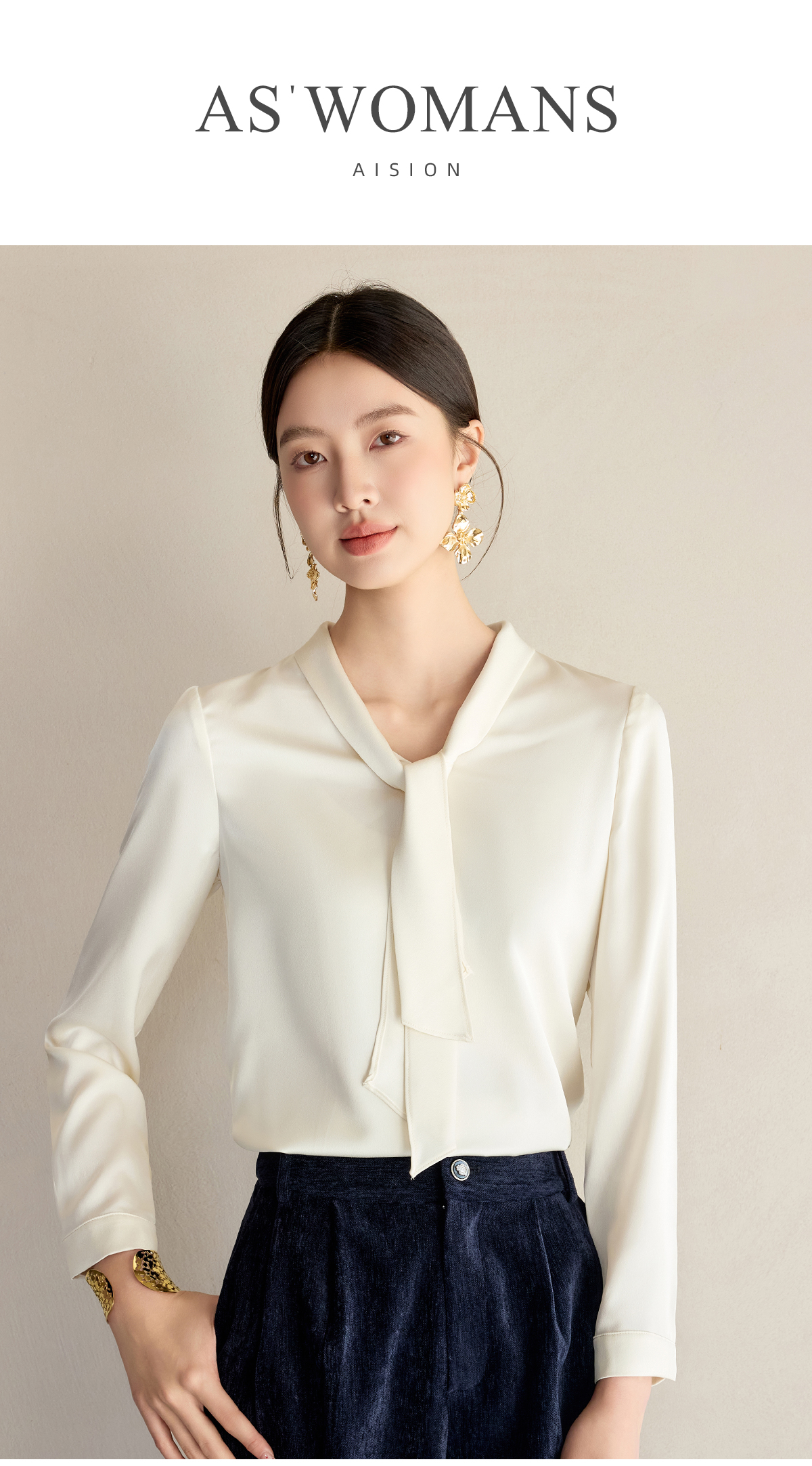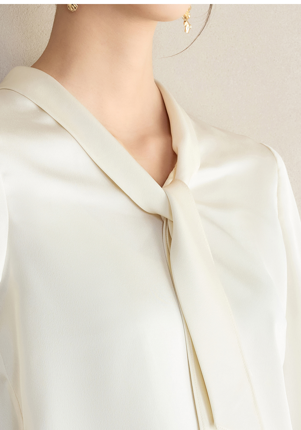 艾尚臣通勤杏色衬衣设计感小众法式小衫飘带衬衫女长袖面试上衣春
