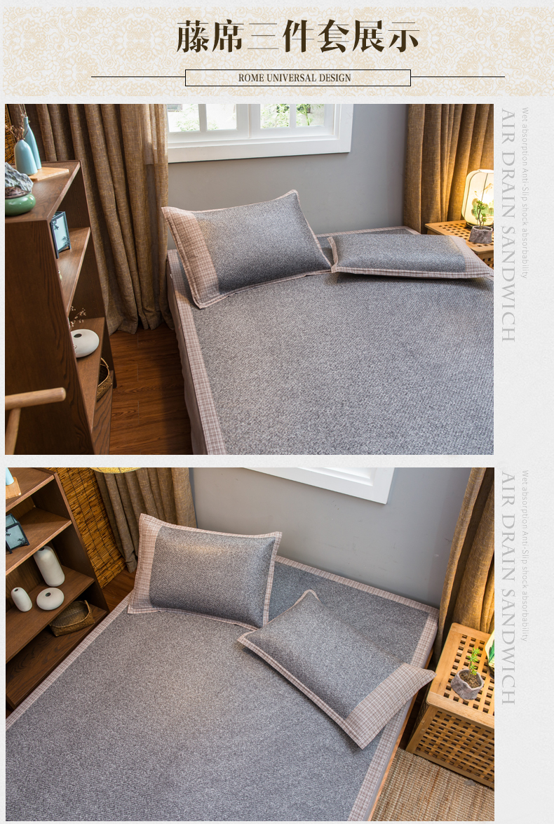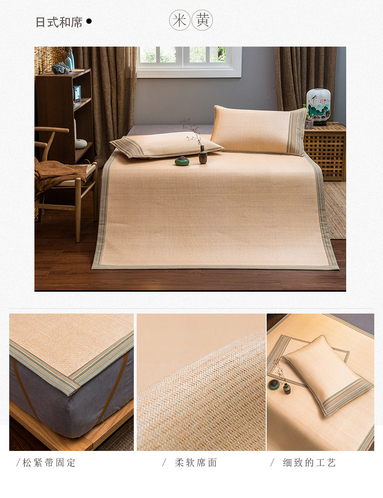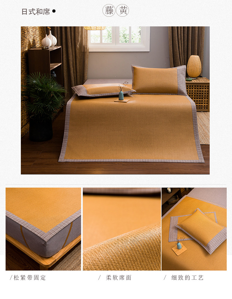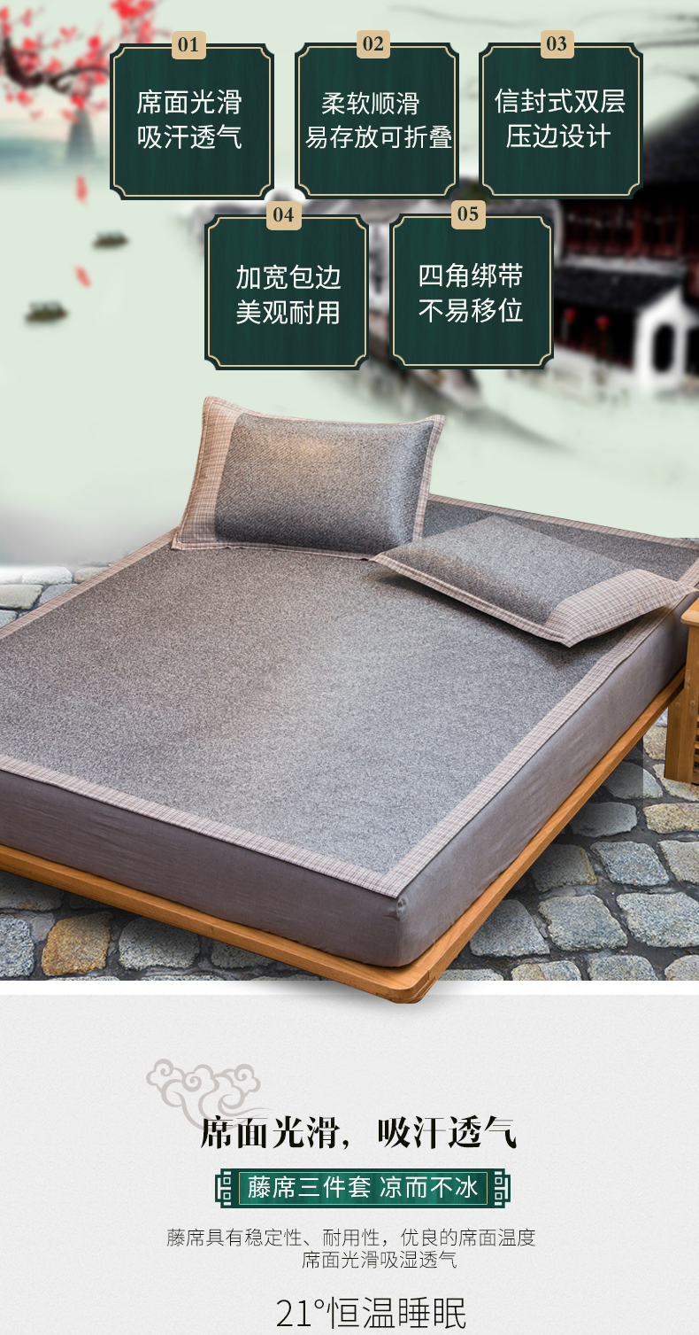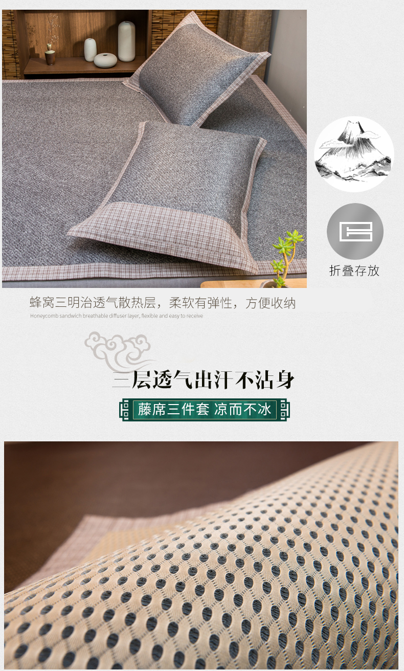 【透气排温 恒温21度】日式简约藤席凉席 冰丝草席可折叠三件套