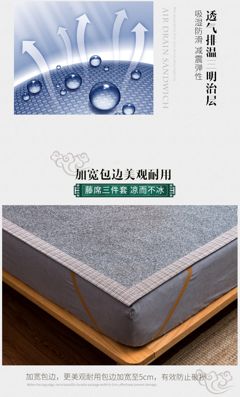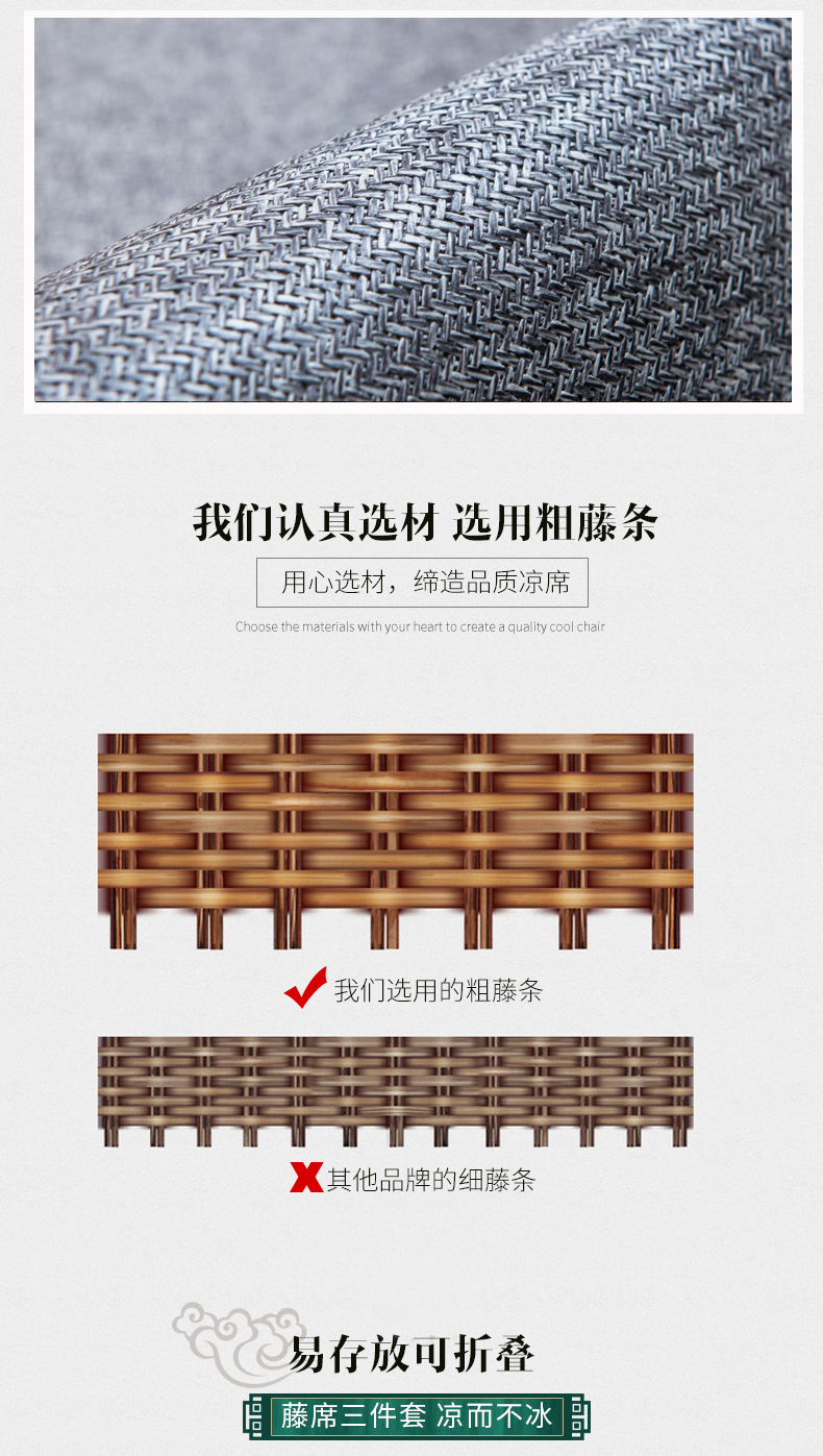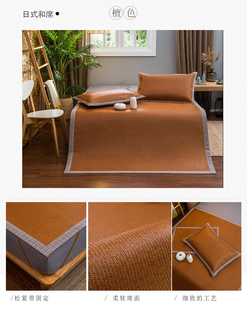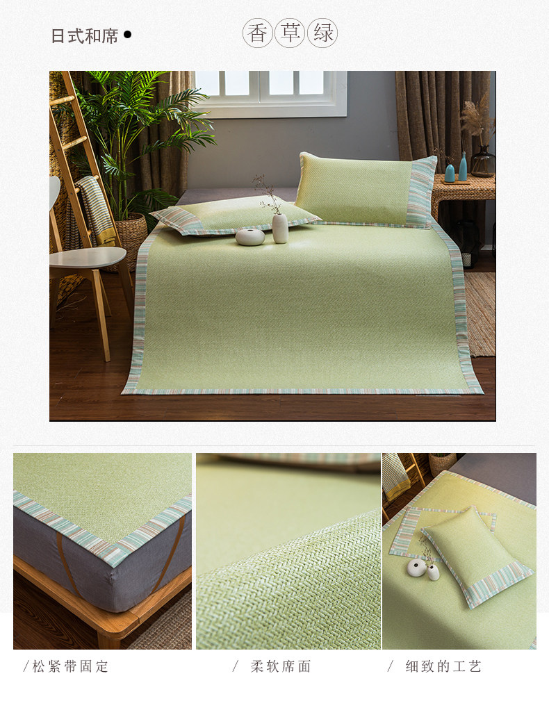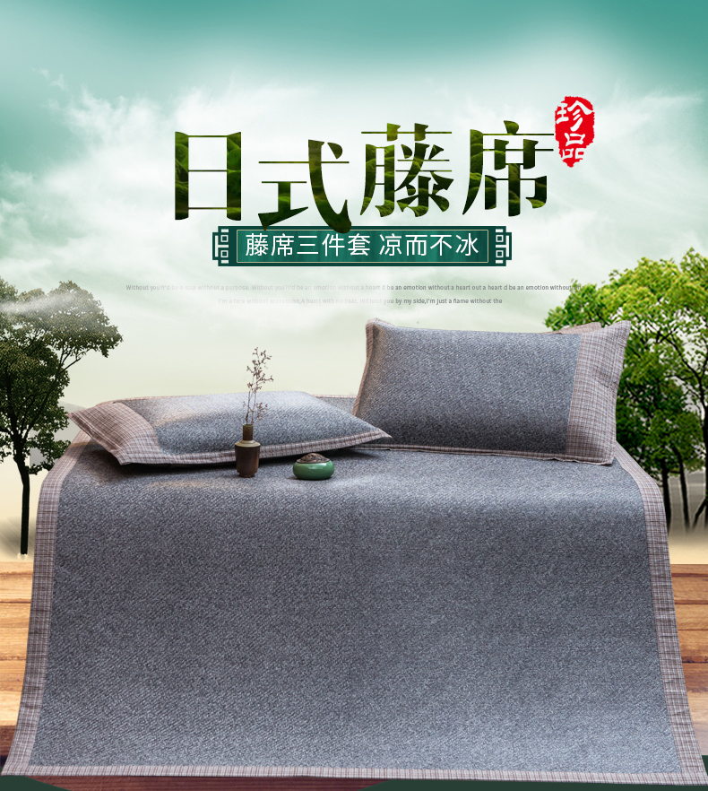 【透气排温 恒温21度】日式简约藤席凉席 冰丝草席可折叠三件套