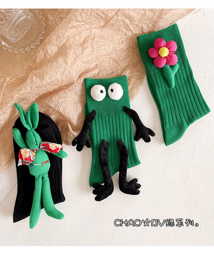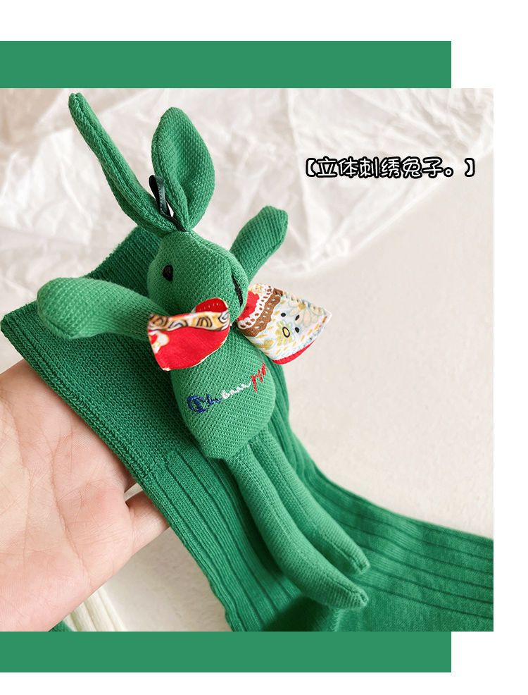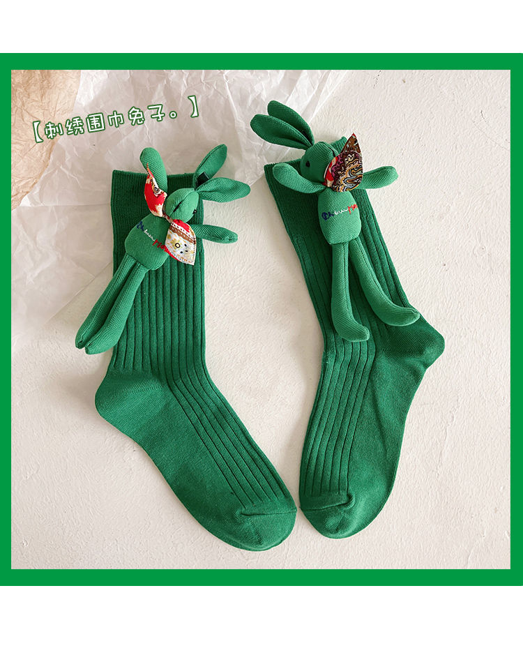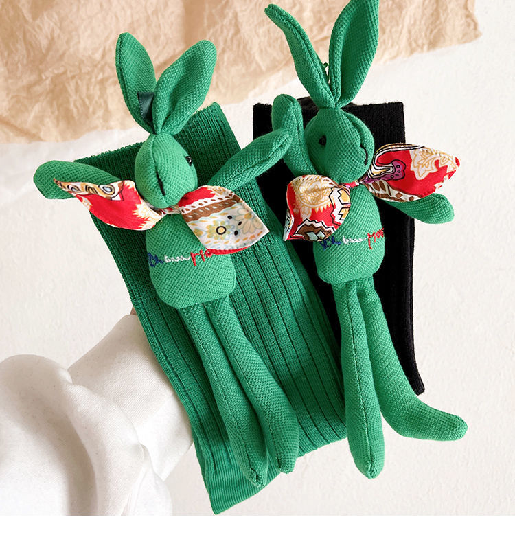 欧货爆款!春季BV绿立体刺绣玩偶兔袜子女外穿小皮鞋显瘦JK堆堆袜
