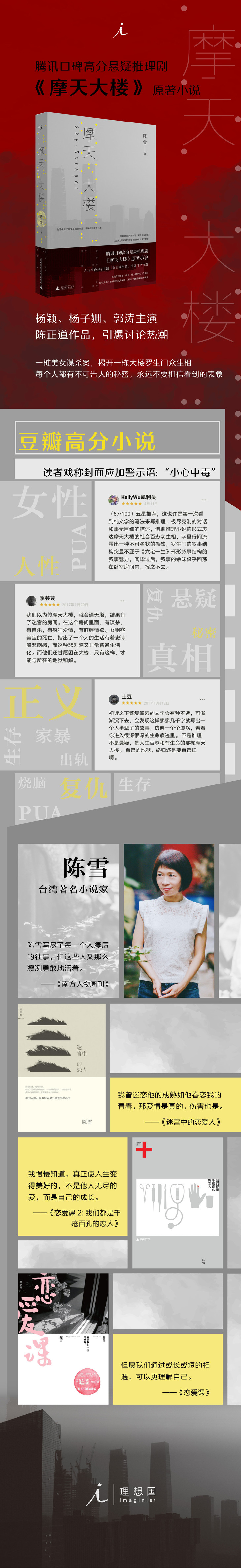 ★ 一桩摩天大楼里的“蓝可儿”式密室杀人疑案,引出21世纪城乡结合部巨大生活空间的灵魂百态:看似命案的解谜推理,每一条线索都牵引出挣扎在城市与乡村夹缝中的底层人物浮世绘。保险员、设计师、房屋中介、美妆店小姐、咖啡店店长……人人都向往着过上更好的生活,但成功的机会却越来越少。他们或者是你,或者是我,小说几乎贴着现代社会中人的表皮叙事,让人读来绝无事不干己的疏离。