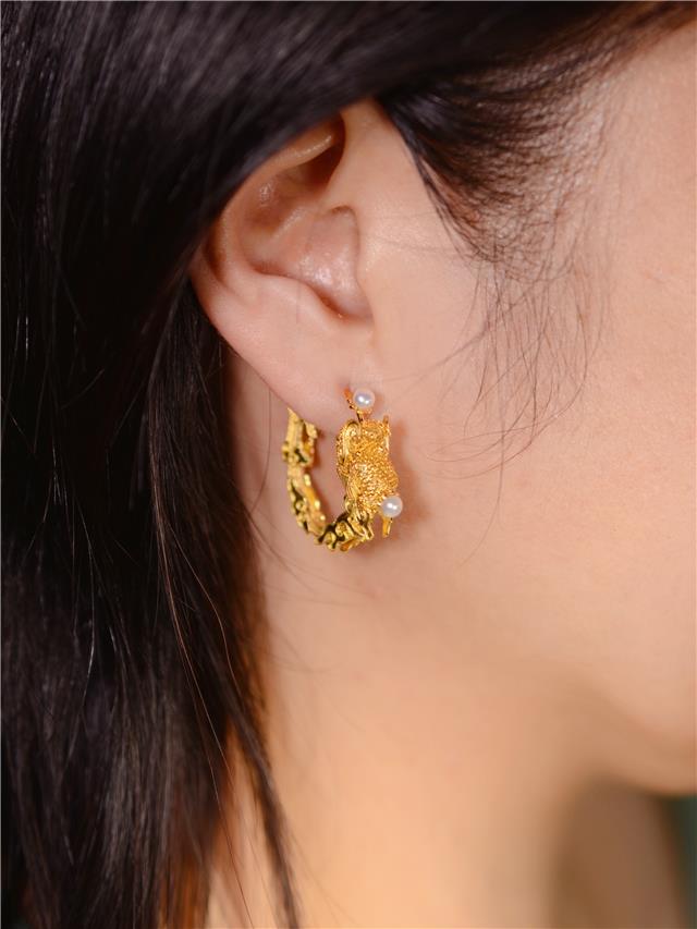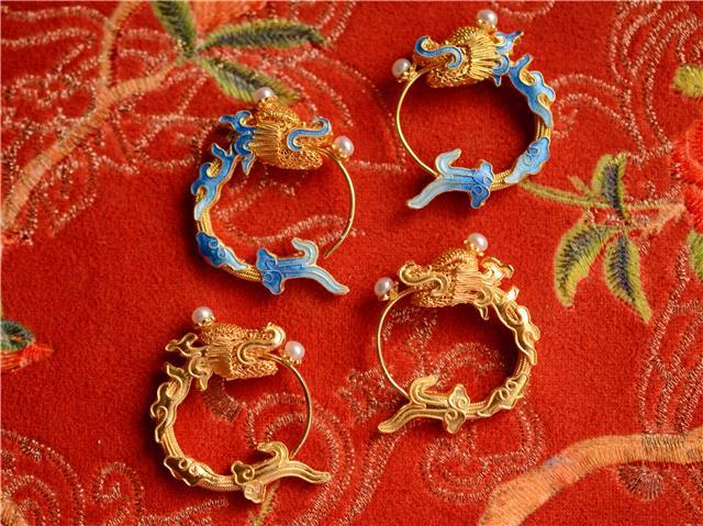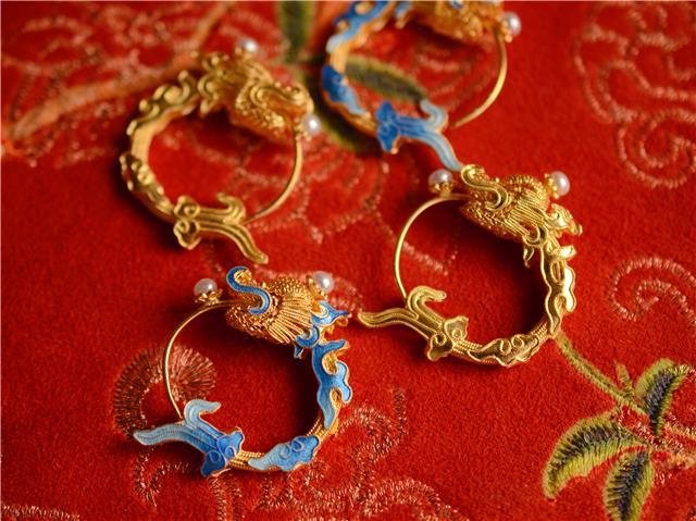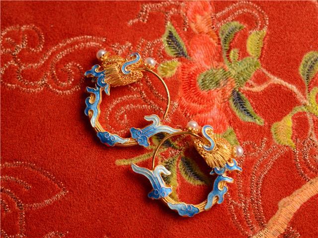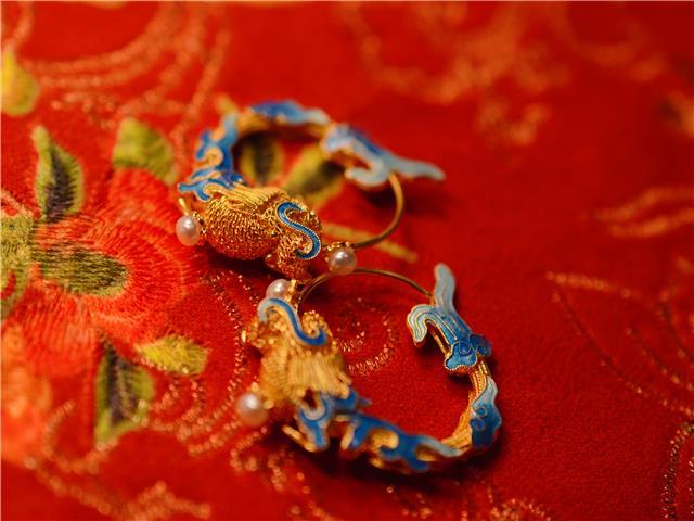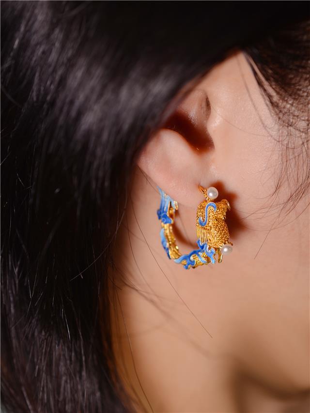 中国风国潮搭配珐琅花丝掐丝烧蓝仿古龙耳环