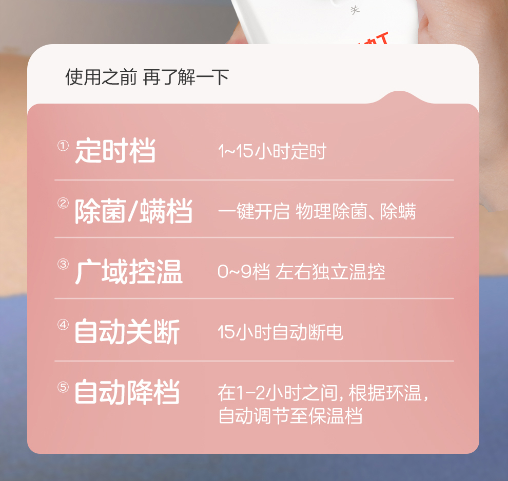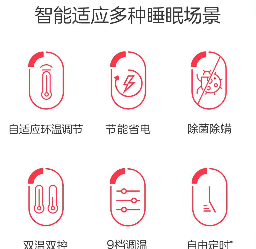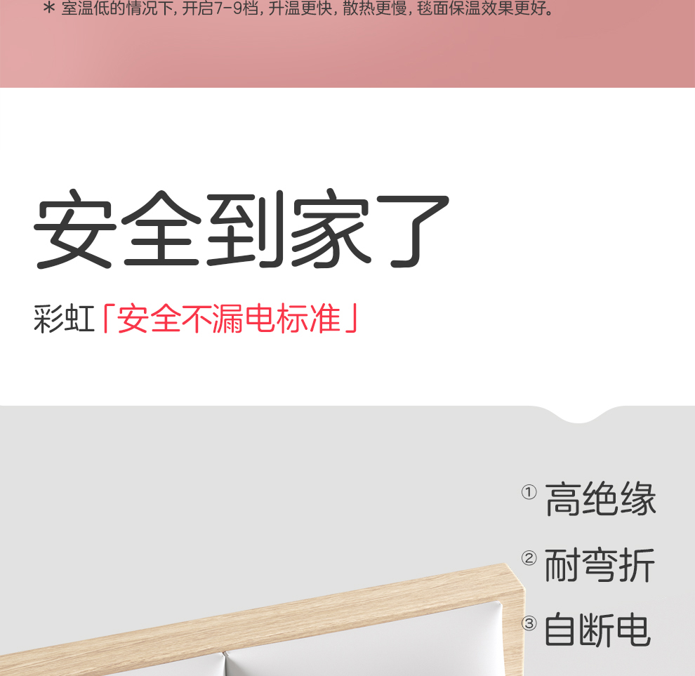 彩虹全线路安全保护双控双温电热毯(9档NTC自动调温、双人印花)1852