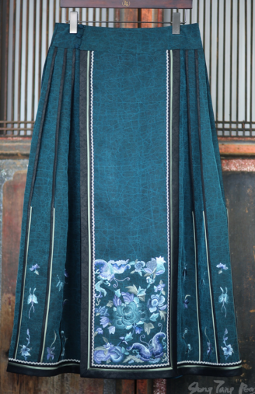 盛唐牡丹| 真丝龟纹香云纱三蓝绣马面裙