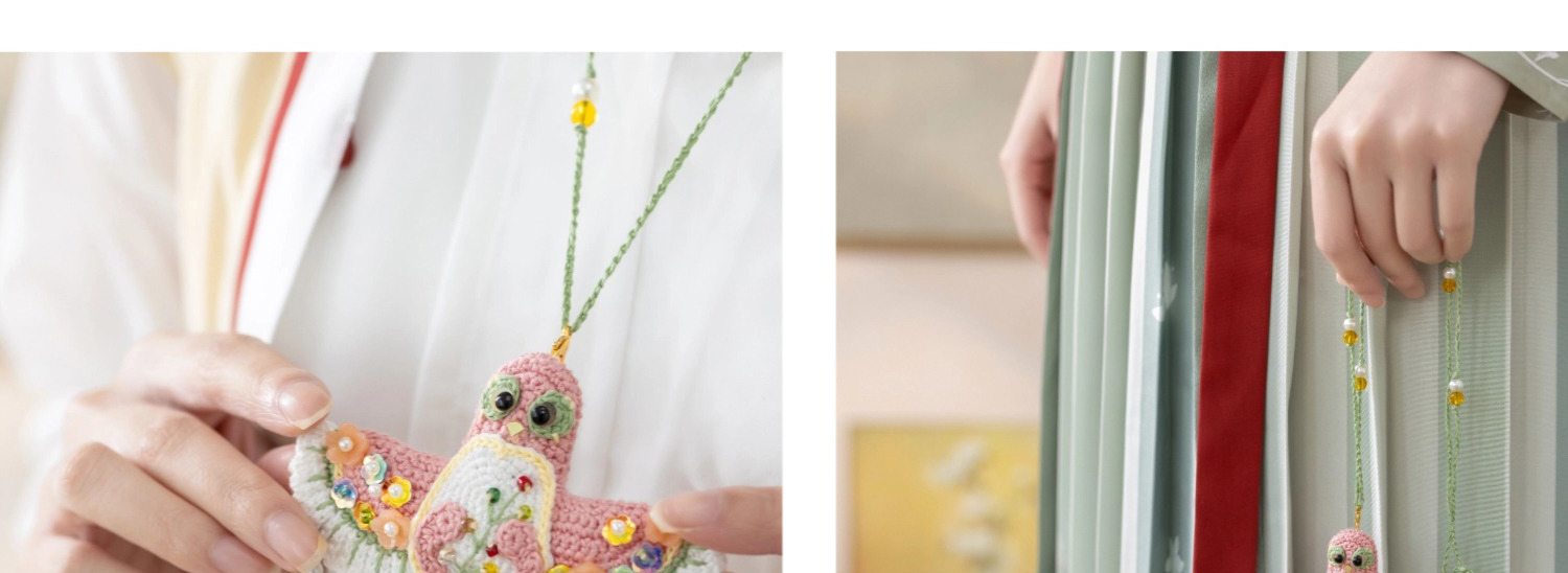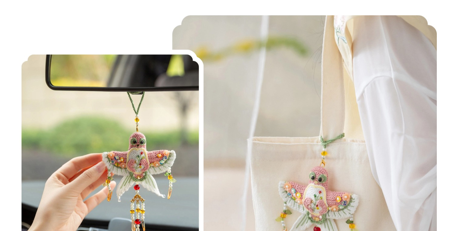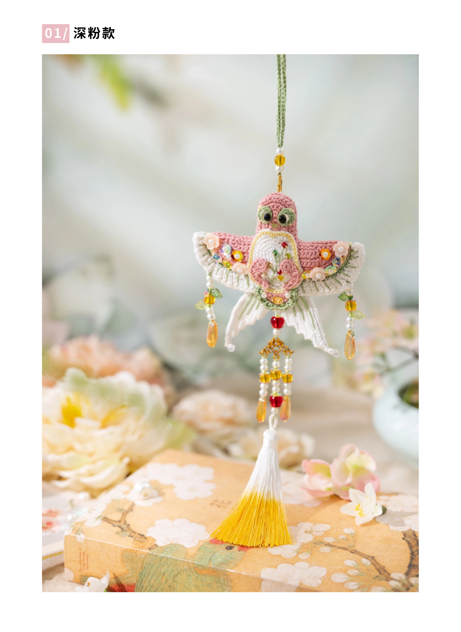苏苏姐家燕衔春香囊挂件手工DIY手编钩针毛线团挂件自制材料包