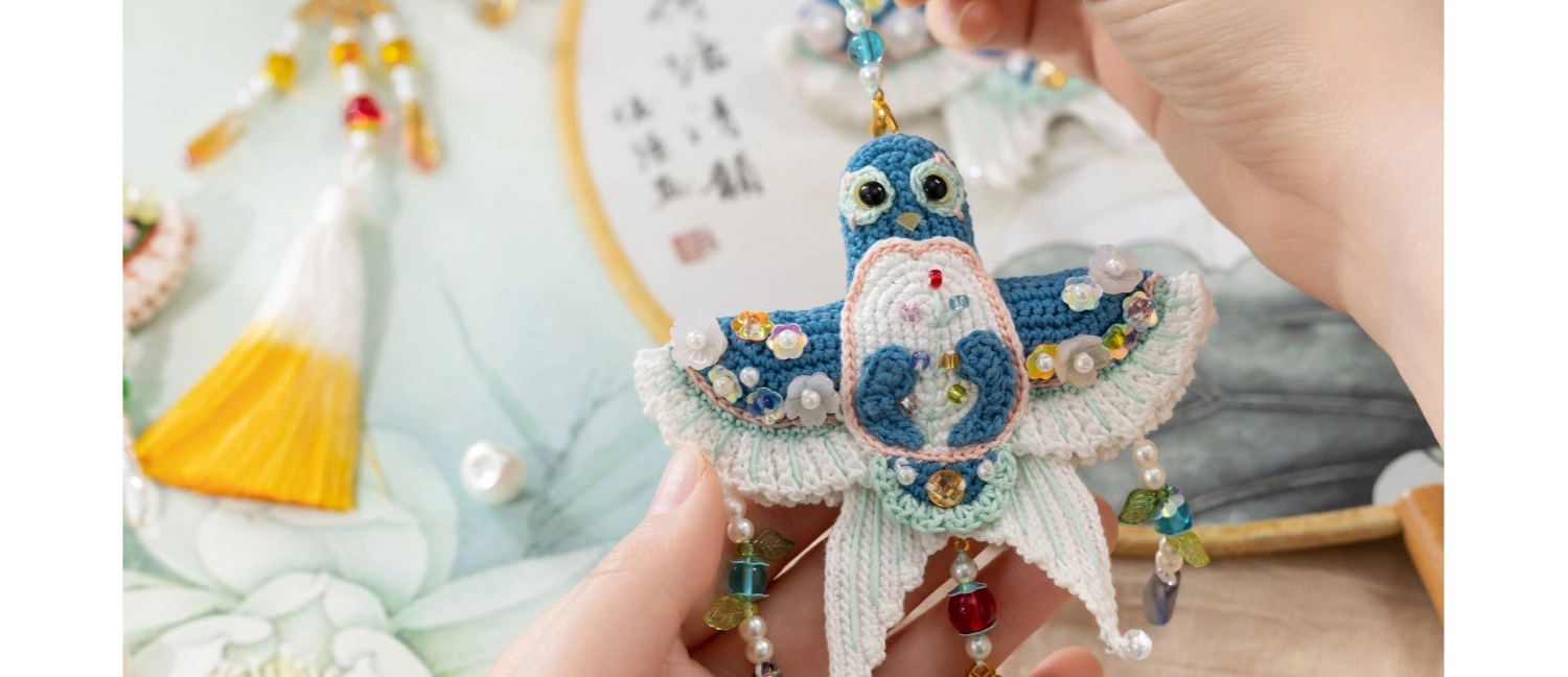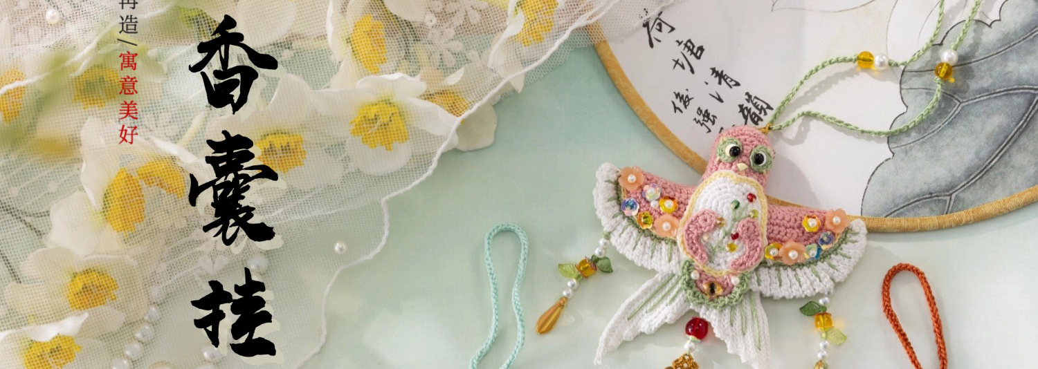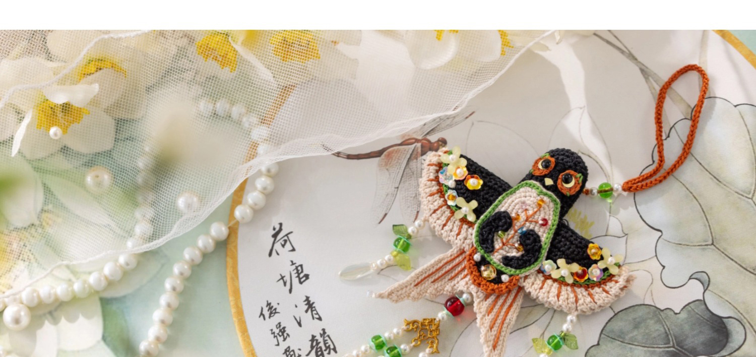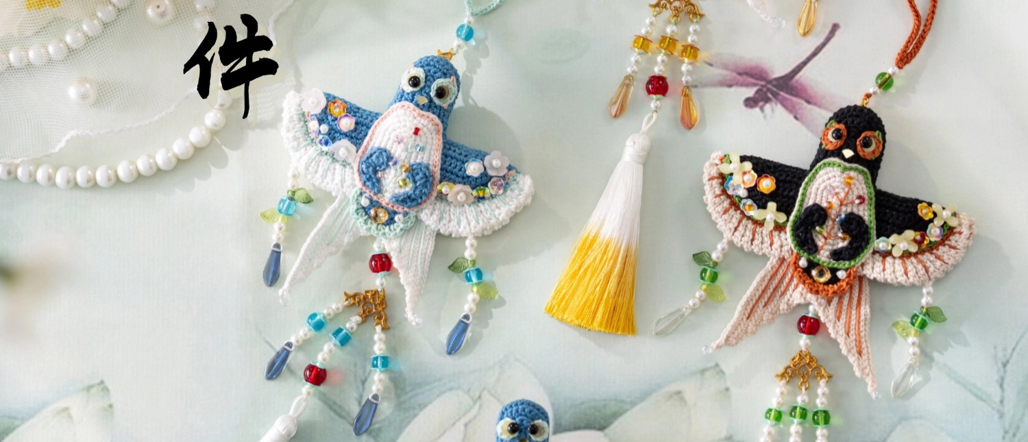 苏苏姐家燕衔春香囊挂件手工DIY手编钩针毛线团挂件自制材料包