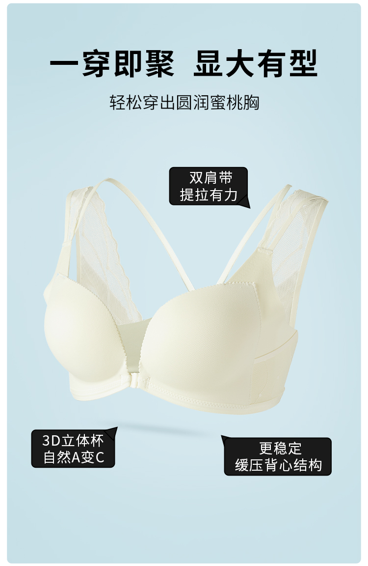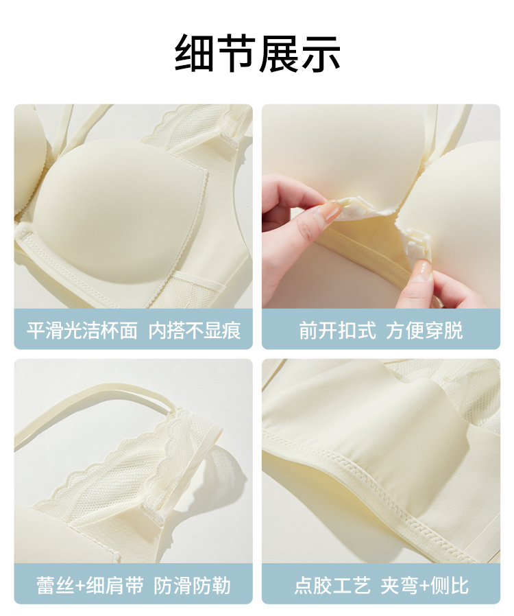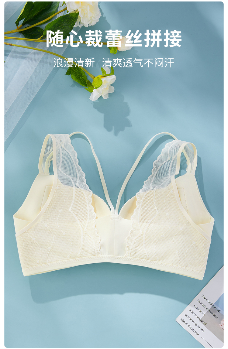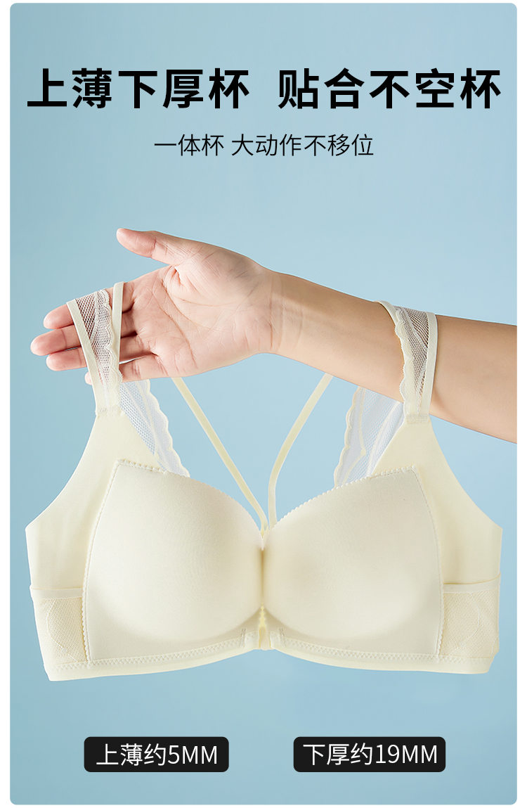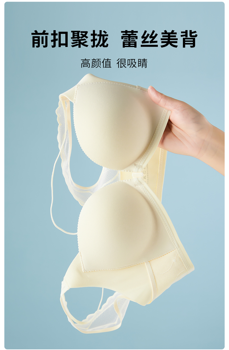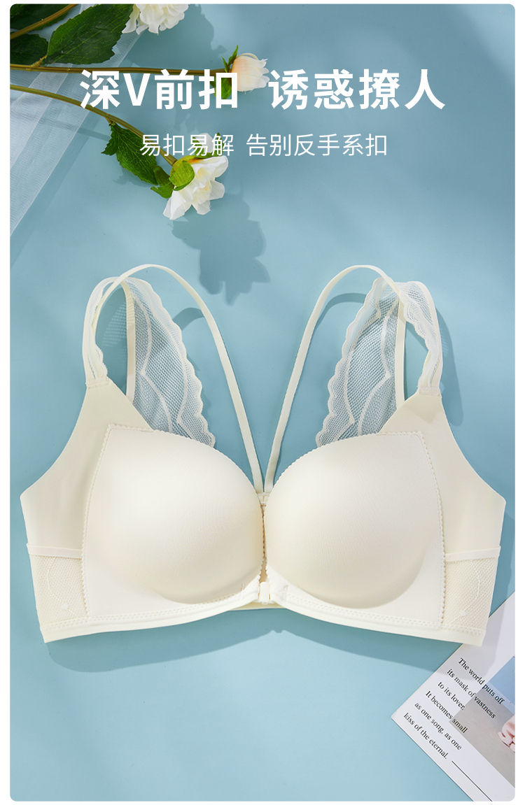 雅黛丽内衣女聚拢小胸深V前开扣文胸无钢圈性感蕾丝美背女士胸罩