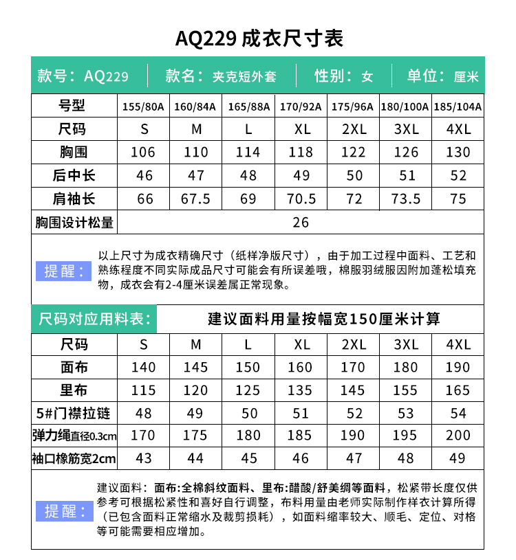 裁缝学苑AQ229薄款夹克短外套纸样女装工装风插肩上衣服装打板