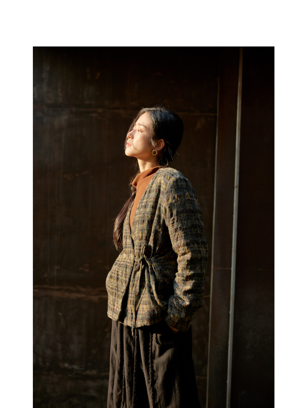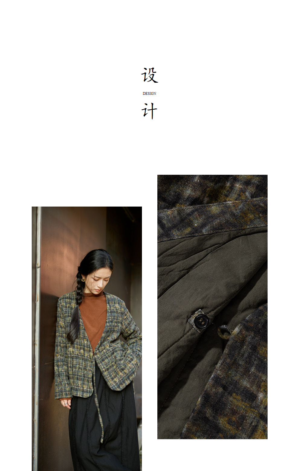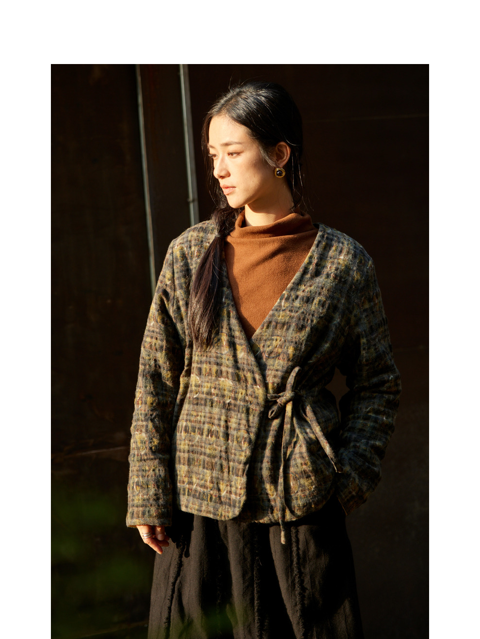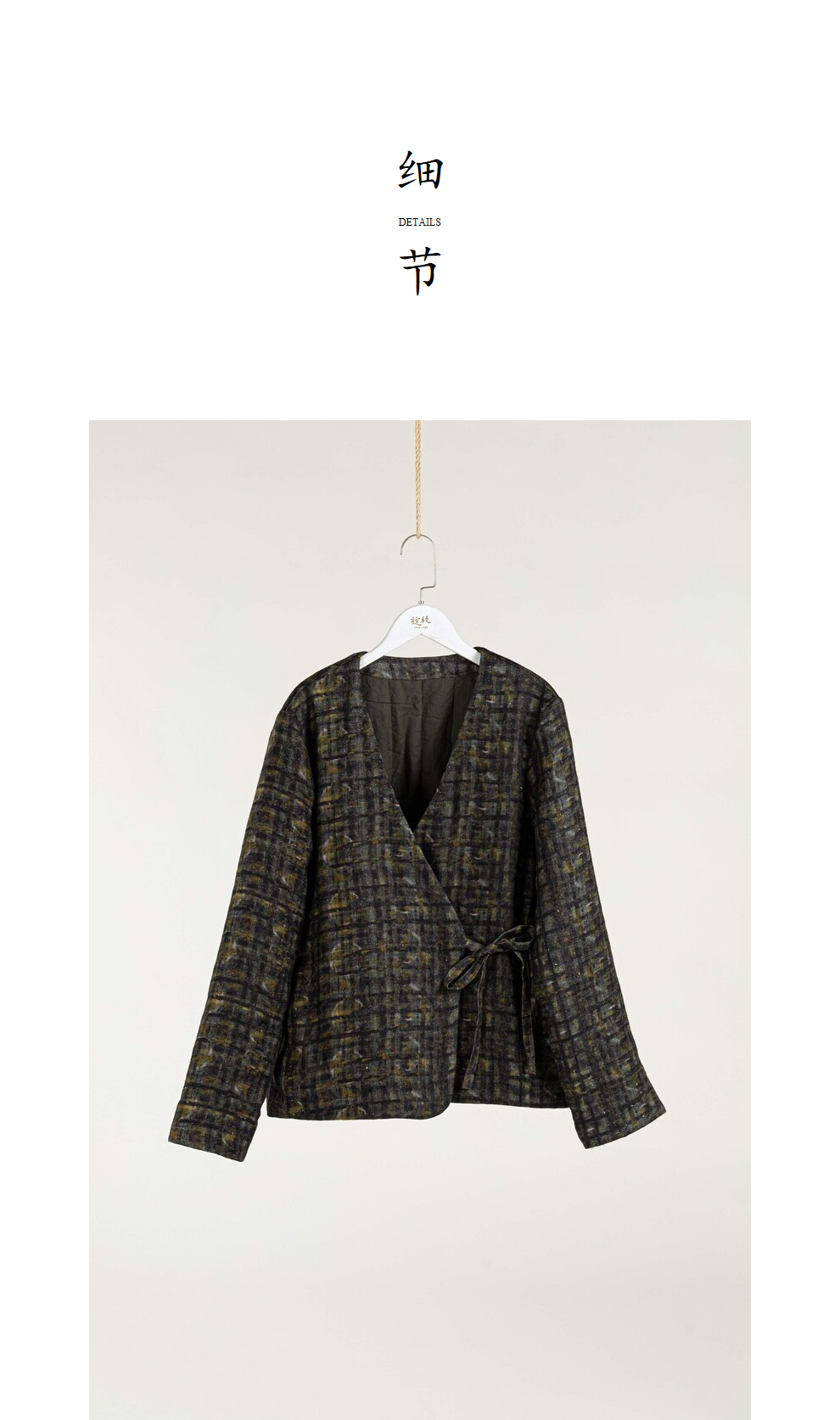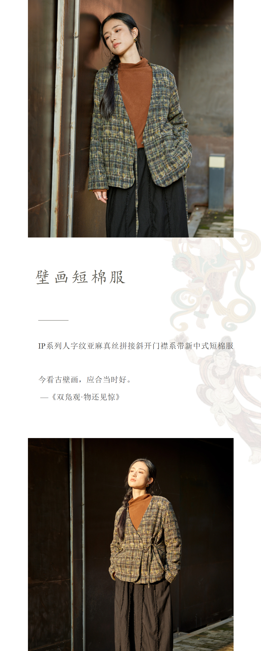 绽放850/【IP兰州系列】人字纹亚麻真丝拼接斜开襟新中式棉服棉衣