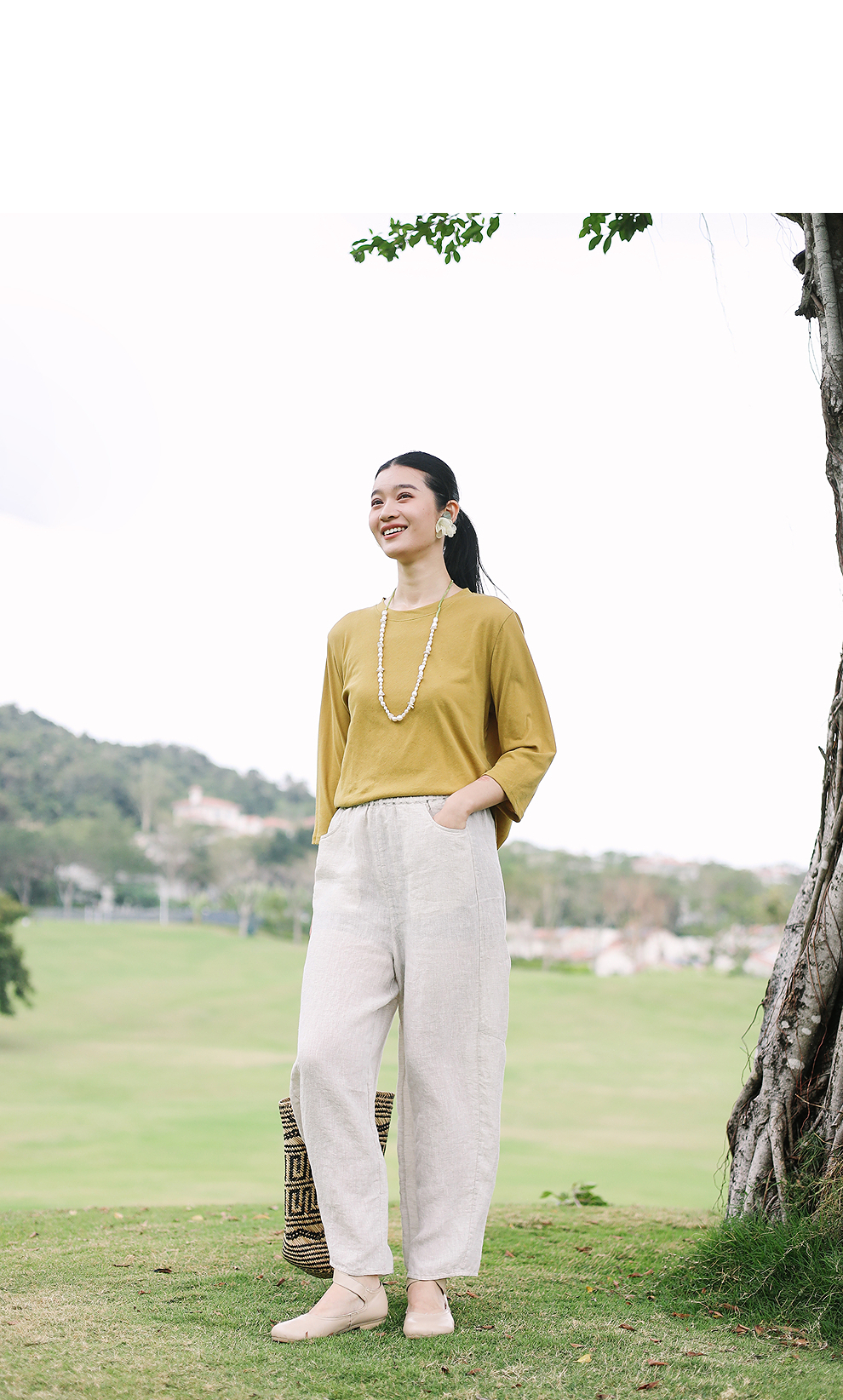 以天然亚麻为载体,融合热烈色彩与自在剪裁为身在城市、心怀远方的女性提供兼具美学与舒适的旅行着装