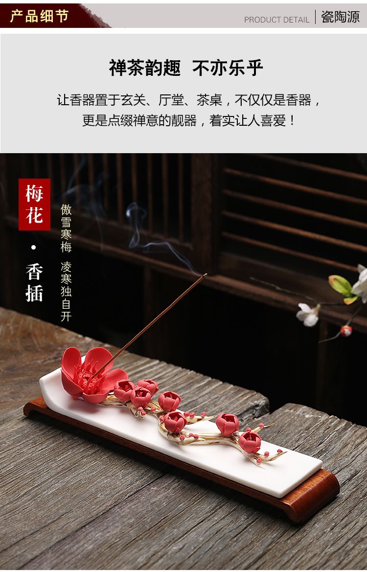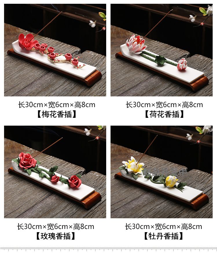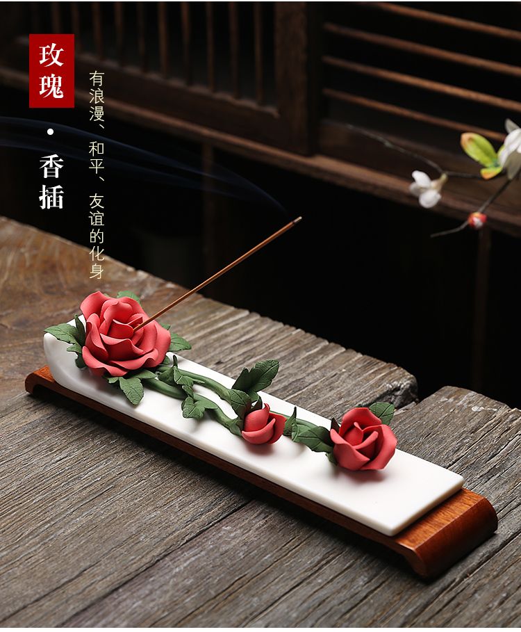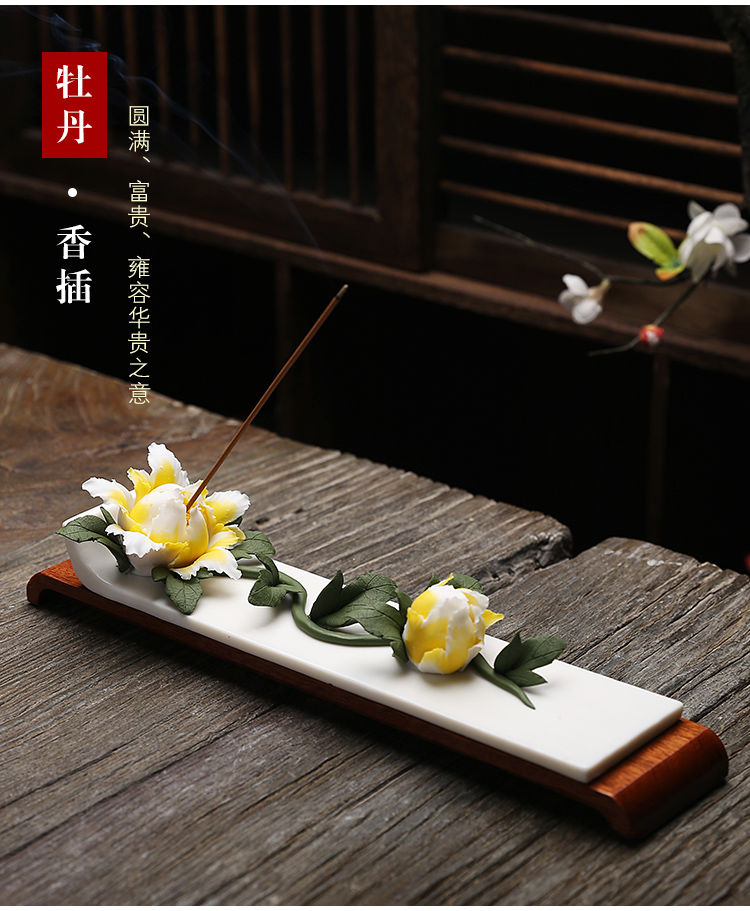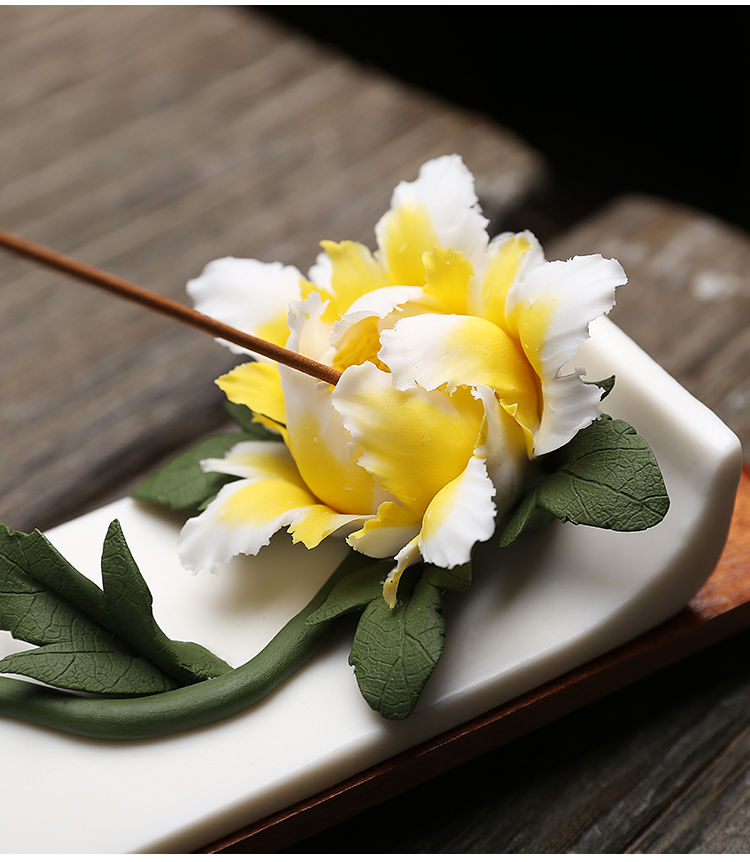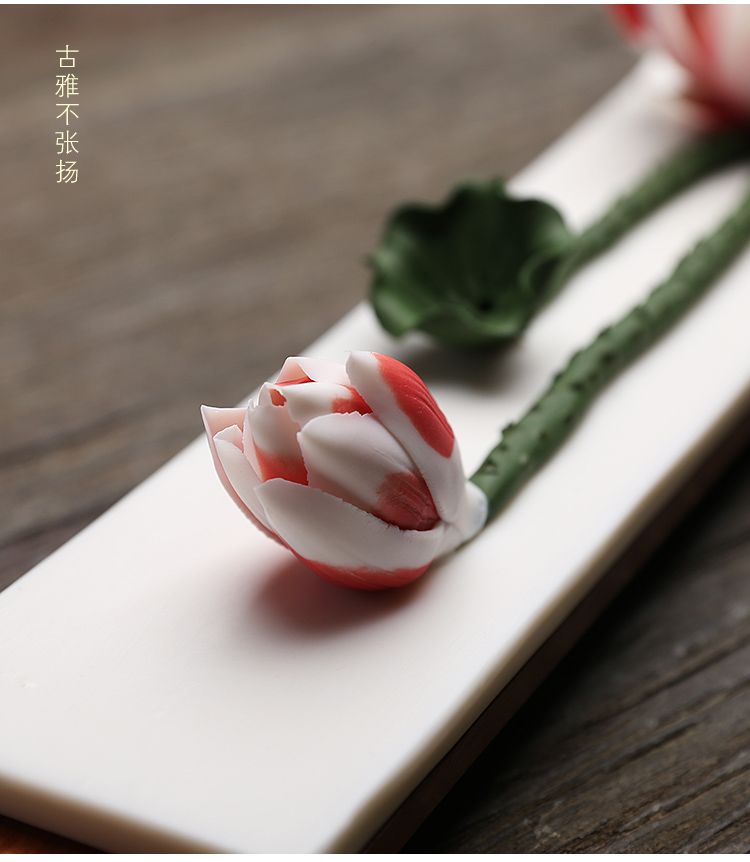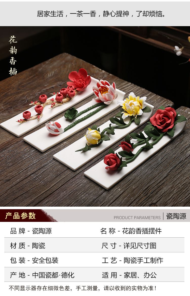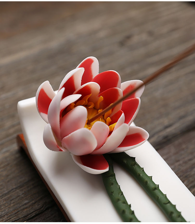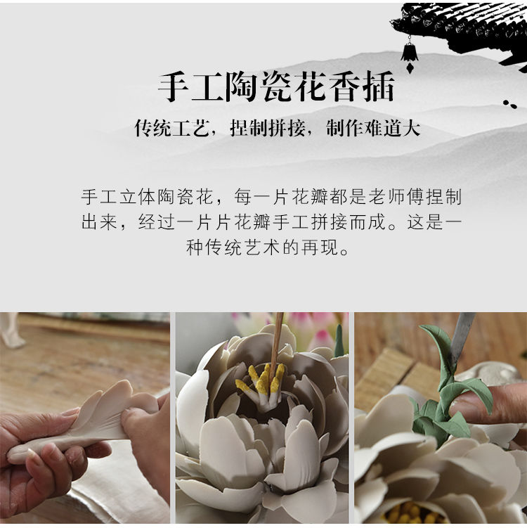 手工陶瓷莲花香插摆件创意家用香薰炉室内线香插香香台接香灰托盘