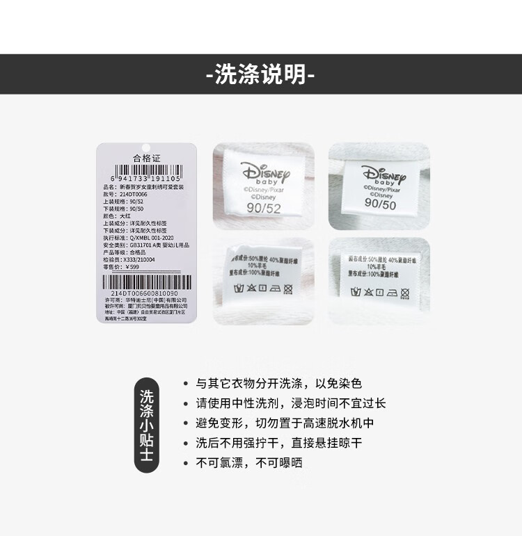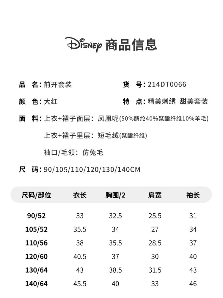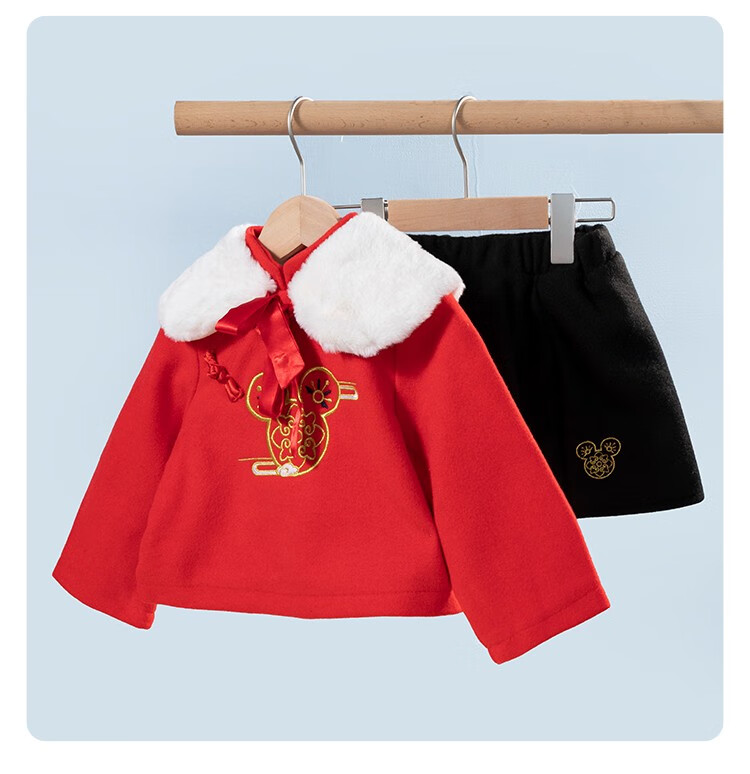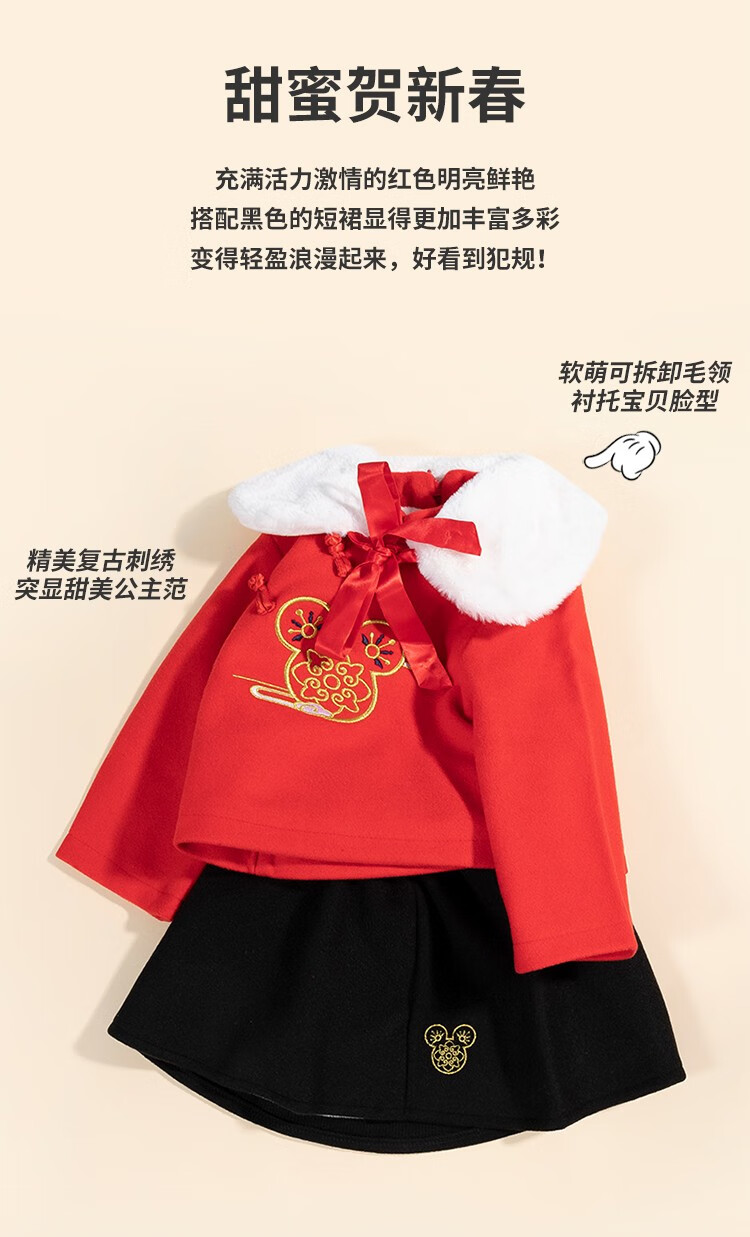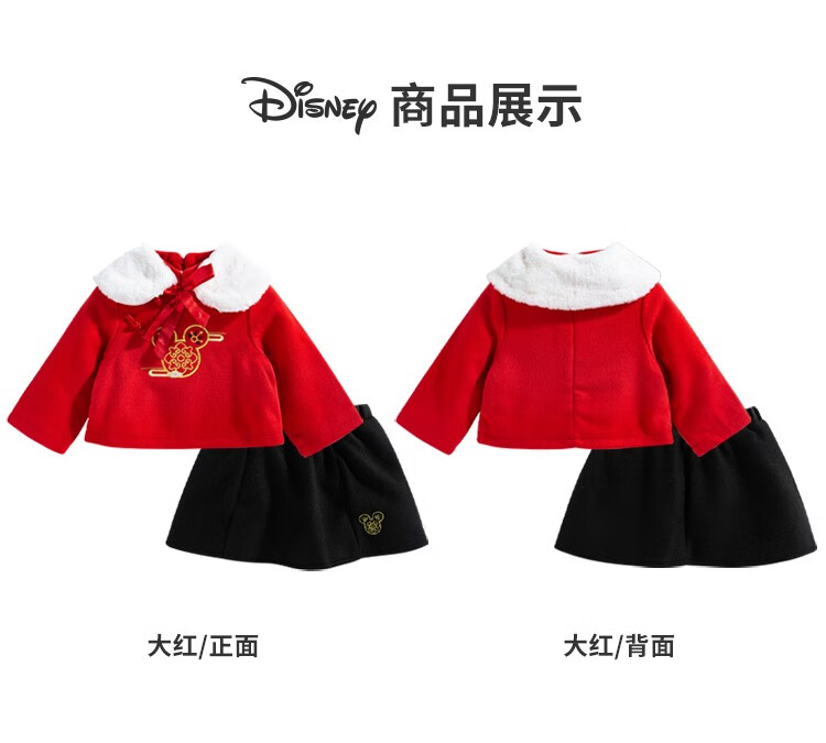 【商场同款】迪士尼童装新款秋冬加绒新春贺岁保暖可爱两件套214DT0066