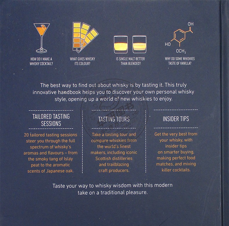 这本书能让你从众多威士忌中选到适合自己的,也让你在提示下再聪明的购买,还教会你如何把威士忌和食物进行完美配搭,以及混合出超赞的鸡尾酒。
