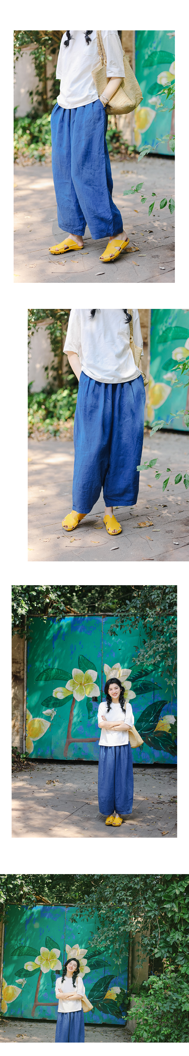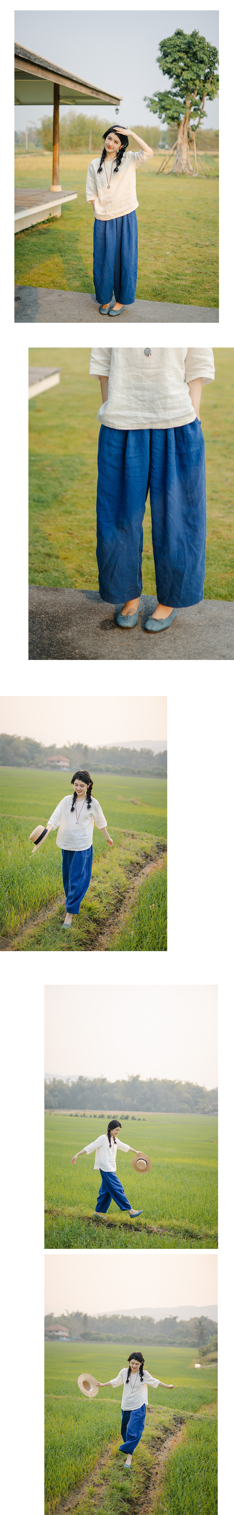 绽放128朵/亚麻日系休闲九分裤