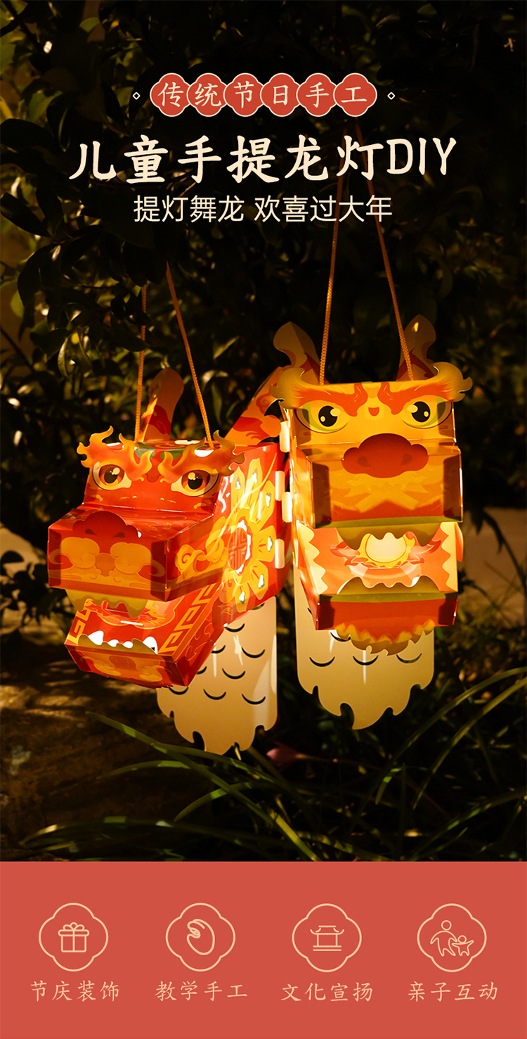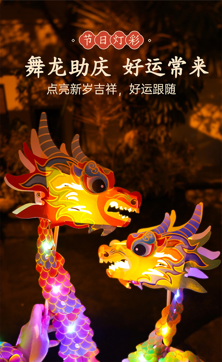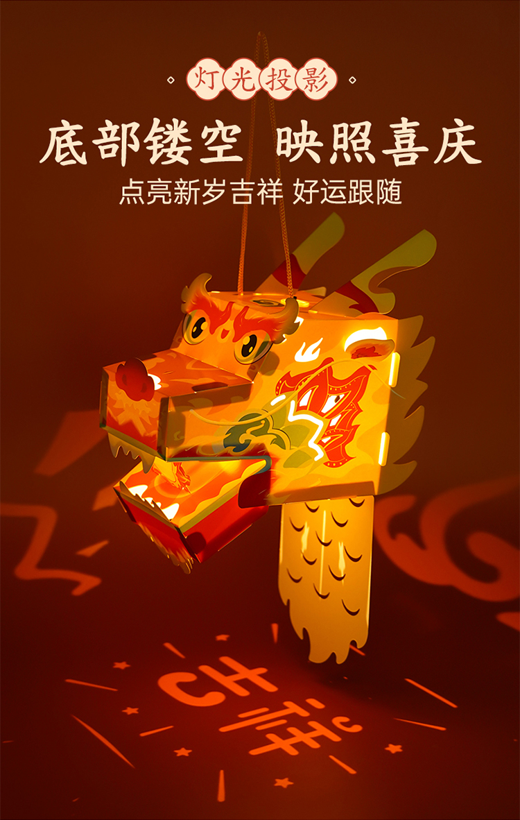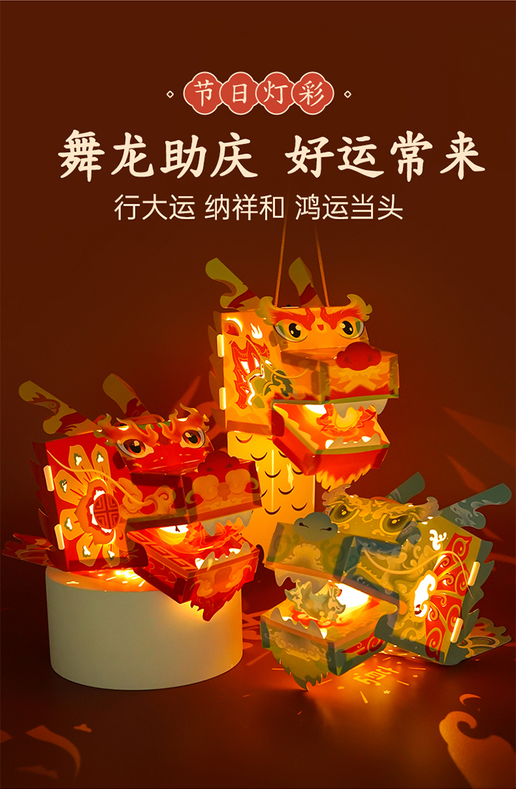 【提灯舞龙 欢喜过大年】Harpaper春节手提灯笼 儿童手工diy玩具生肖龙 舞龙助庆 吉祥如意龙