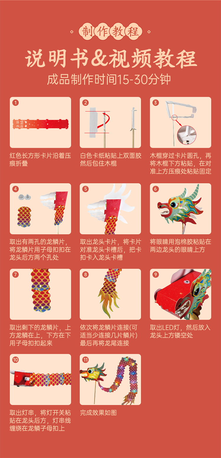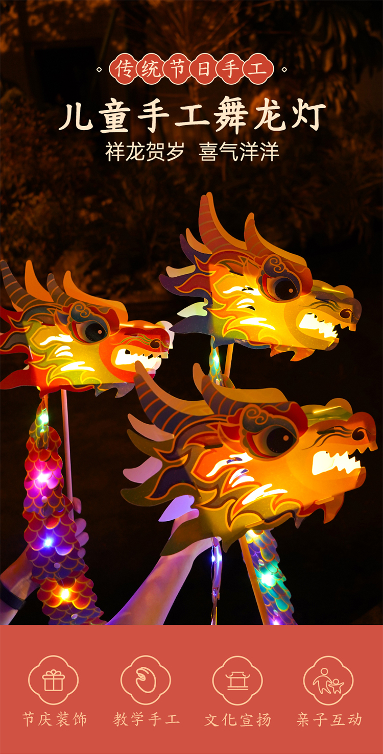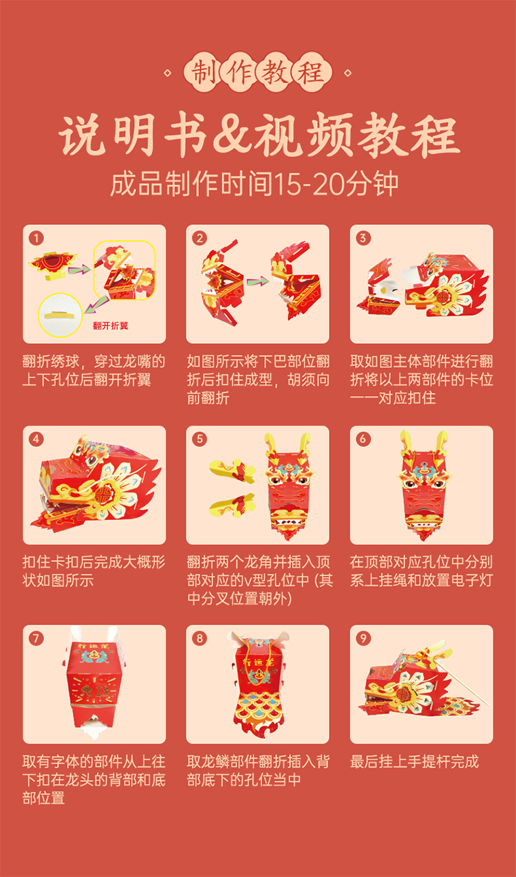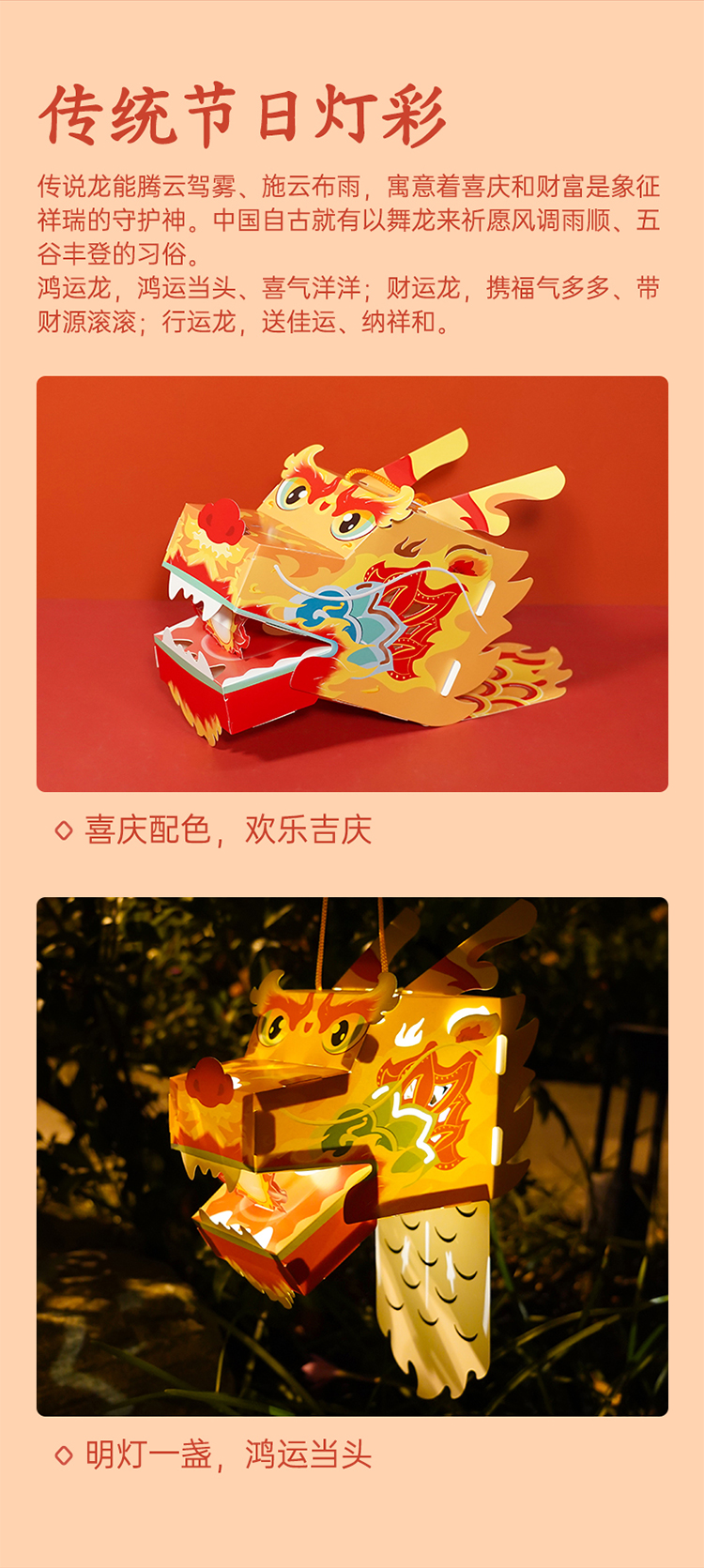 【提灯舞龙 欢喜过大年】Harpaper春节手提灯笼 儿童手工diy玩具生肖龙 舞龙助庆 吉祥如意龙