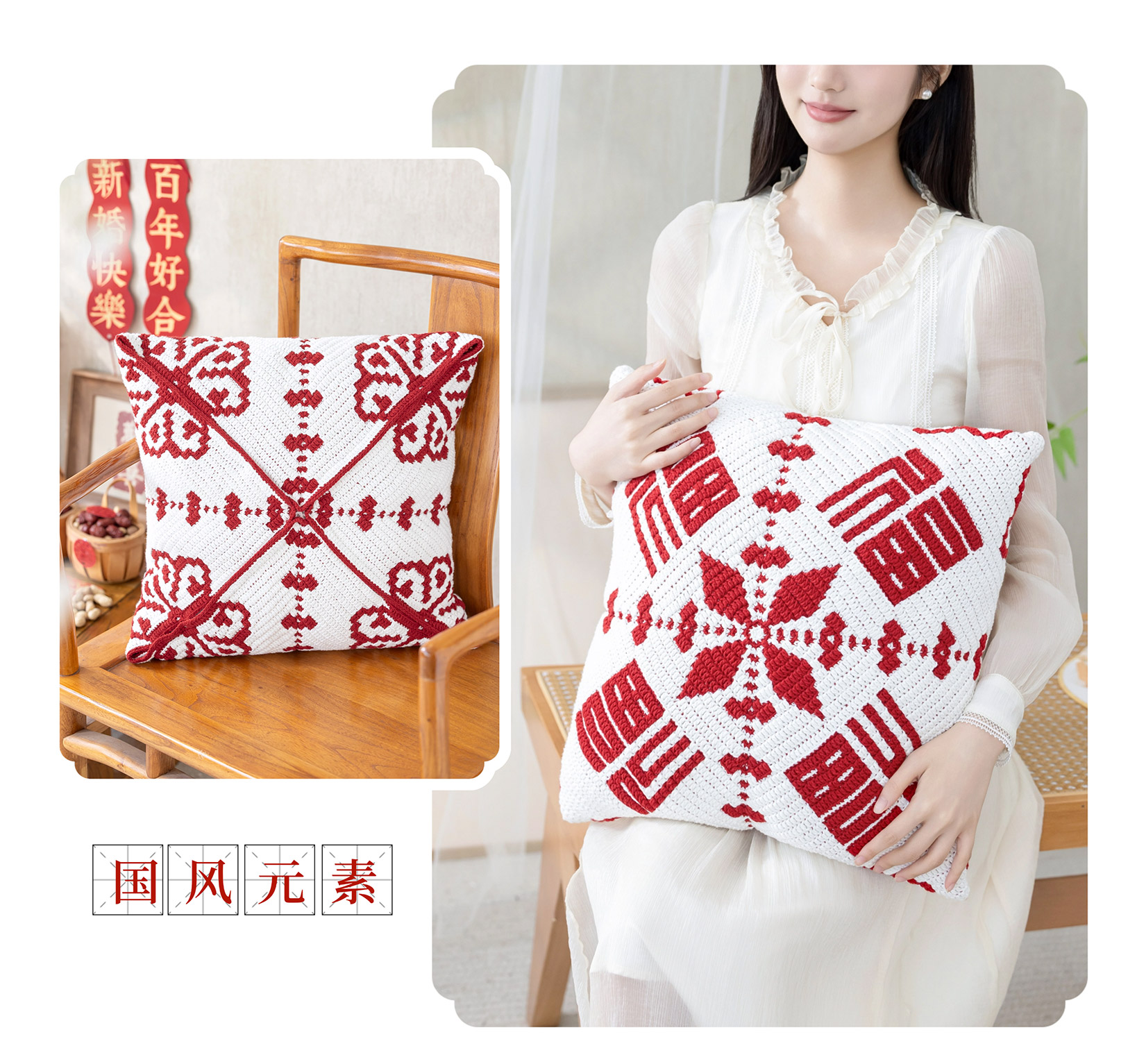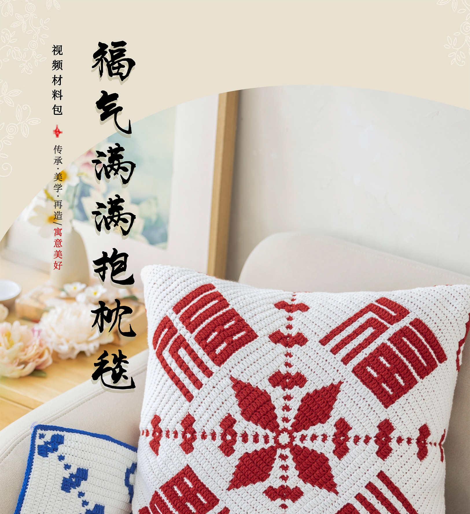 苏苏姐家福气满满抱枕毯手工DIY家居钩针毛线4股牛奶棉自制材料包