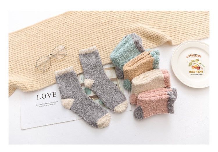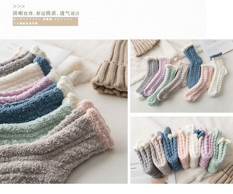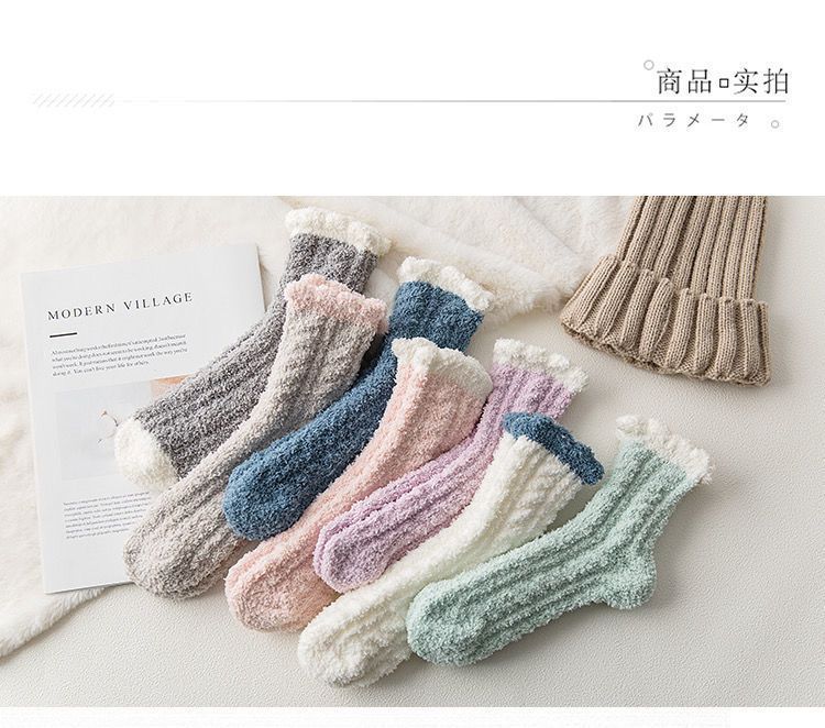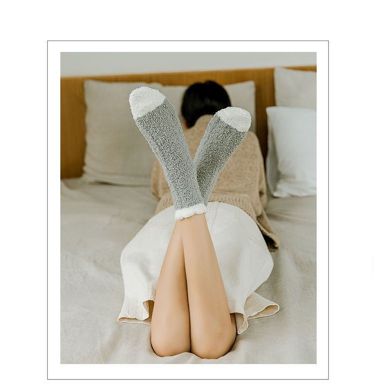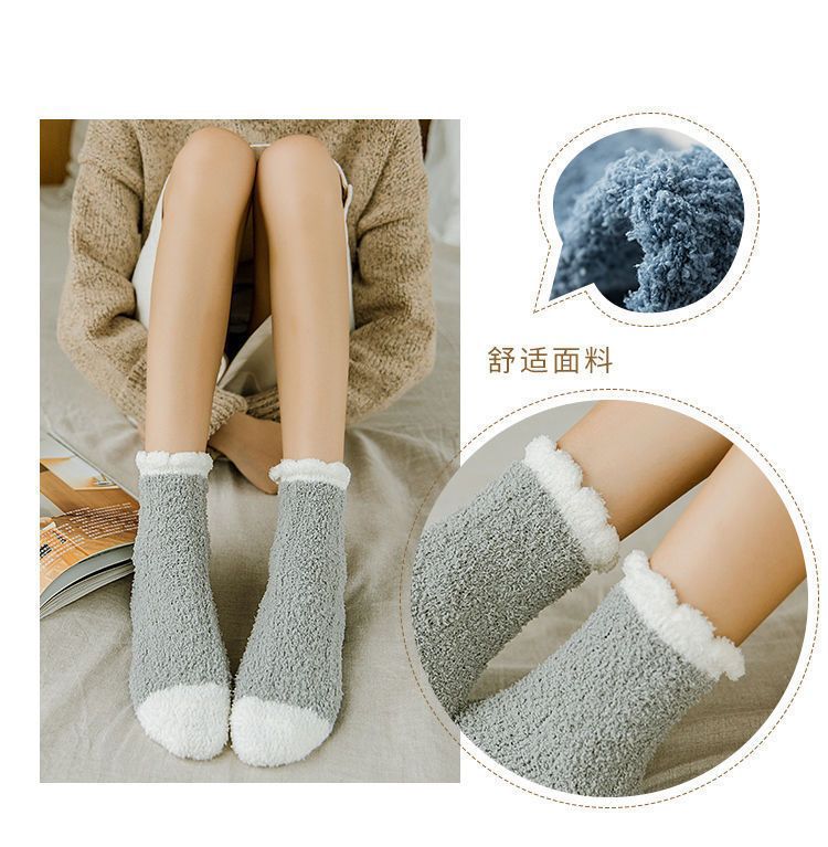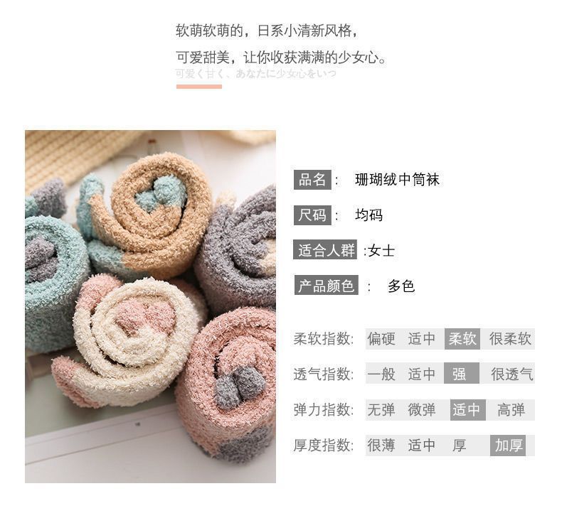 【软软萌萌,加厚珊瑚绒中筒袜】秋冬季软糯珊瑚绒袜子,比棉质更柔软更舒适,减少刺激中筒家居加绒加厚产后月子袜毛绒地板袜